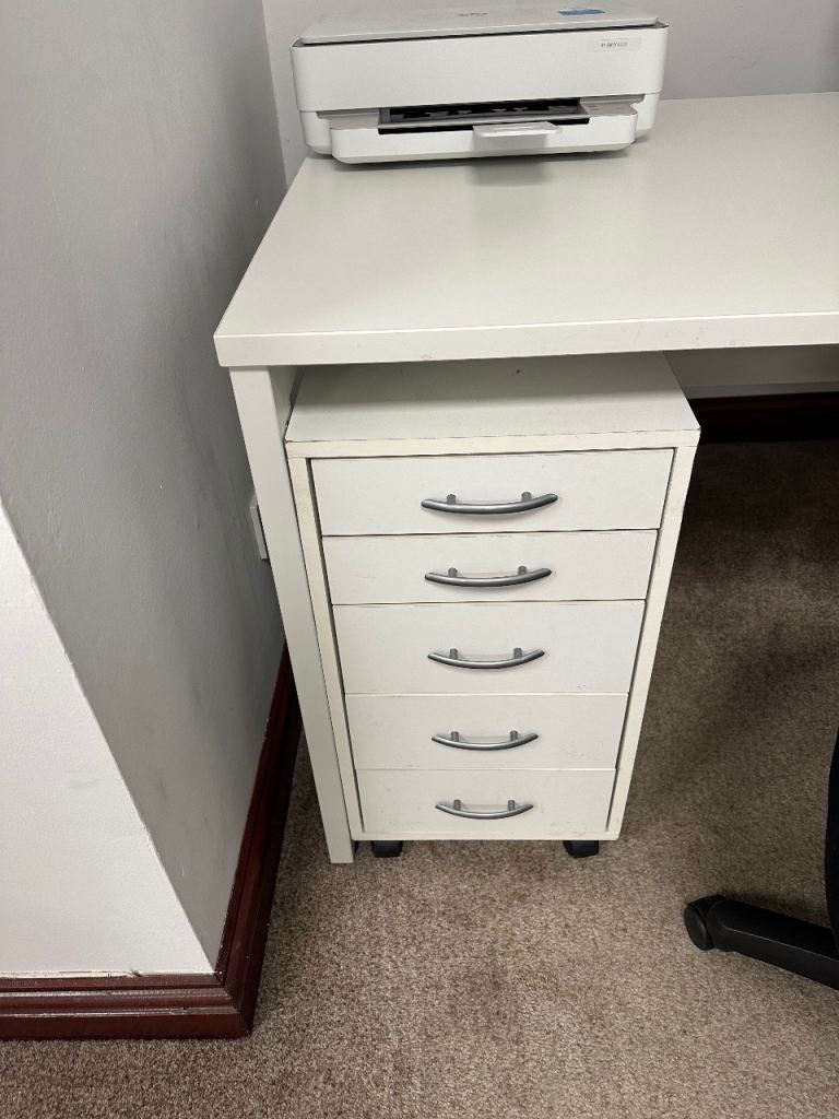 Ready made office set up. Desk (120 x 80) with pedestal , chair, 27” monitor and compact printer.
