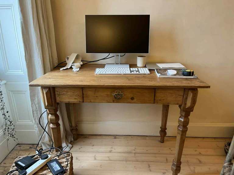 Beautiful vintage wooden writing bureau, perfect for a home office, study, or as a statement piece in any room. It has lovely character and sits well on elegant legs.