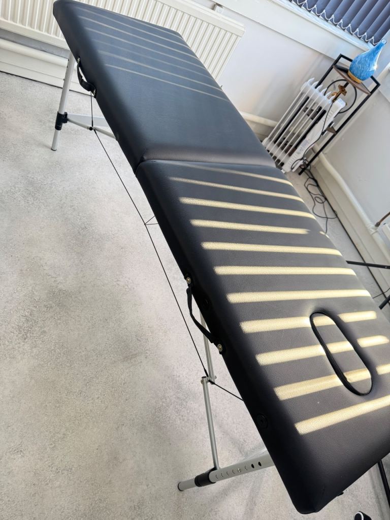 Beauty bed portable with cradle carry case and curved mattress (lash bed). Hardly used, very comfortable.