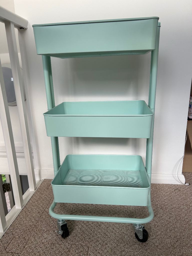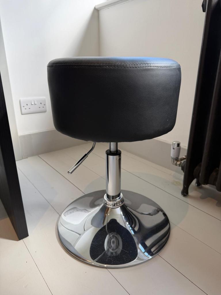 Black desk and stall, which is adjustable suitable for homework or DJ decks.