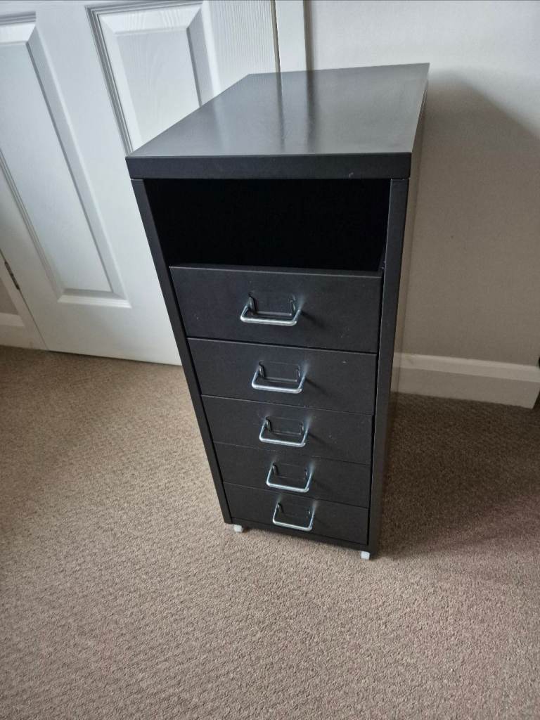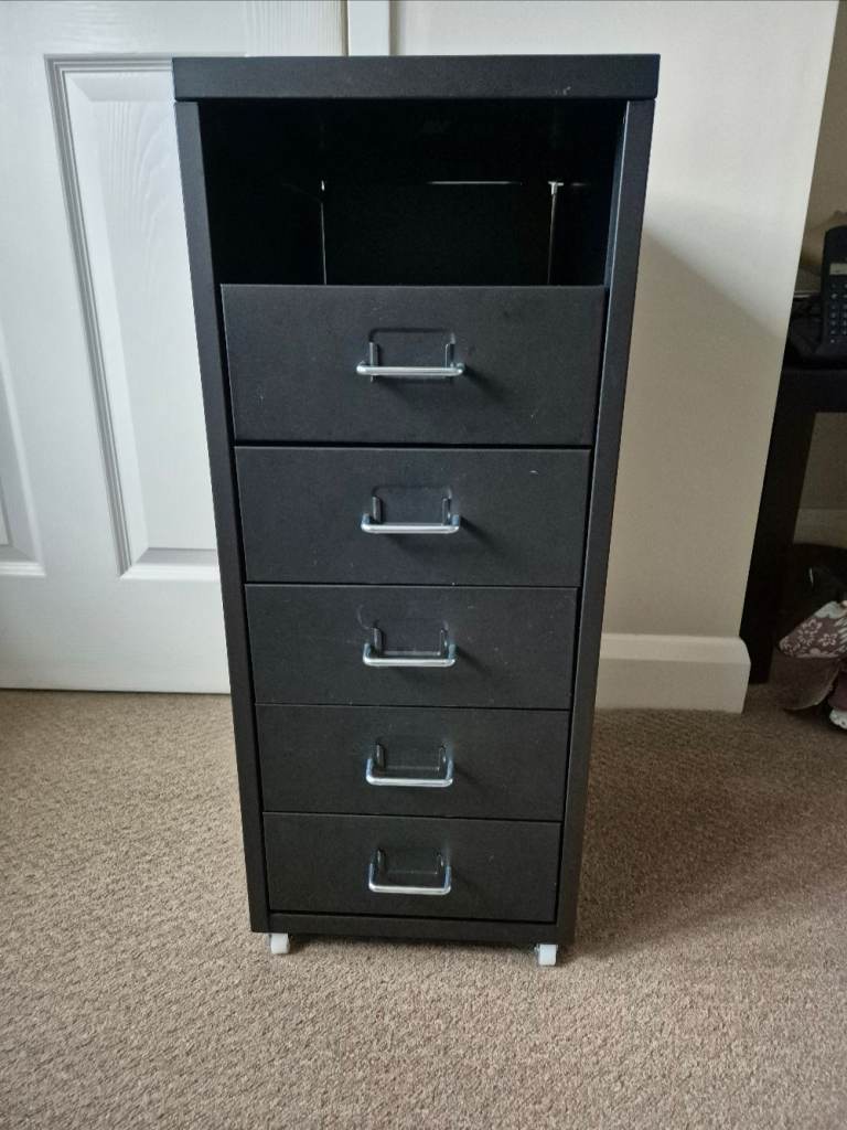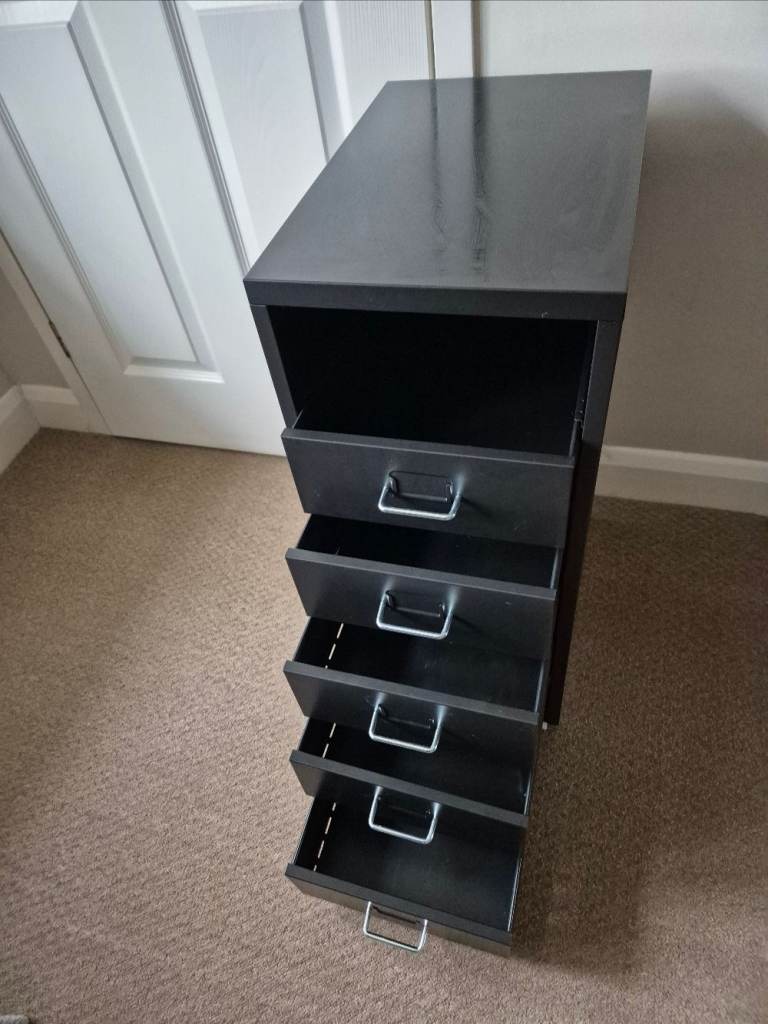 IKEA HELMER metal drawer unit on castors in black with 6 drawers in good condition