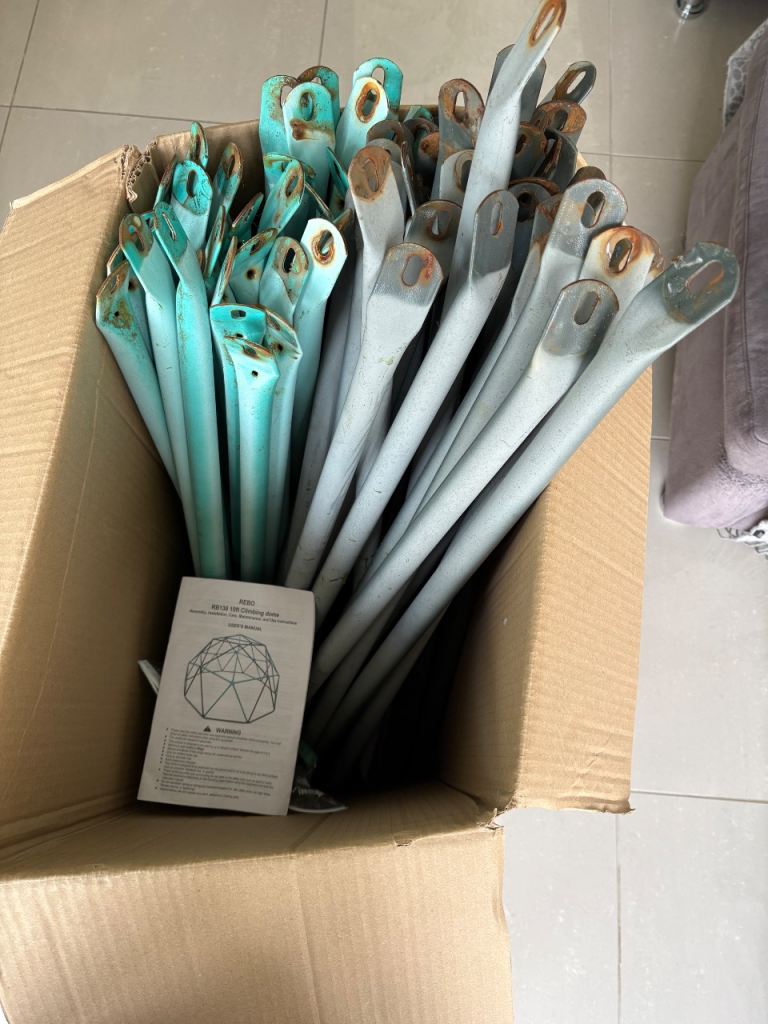 This robust climbing frame has been in our garden for about six years - so is faded and the nuts and bolts are a bit rusty. It came apart without difficulty though. Assembly instructions are included.