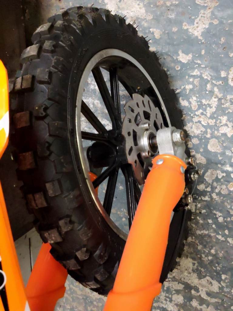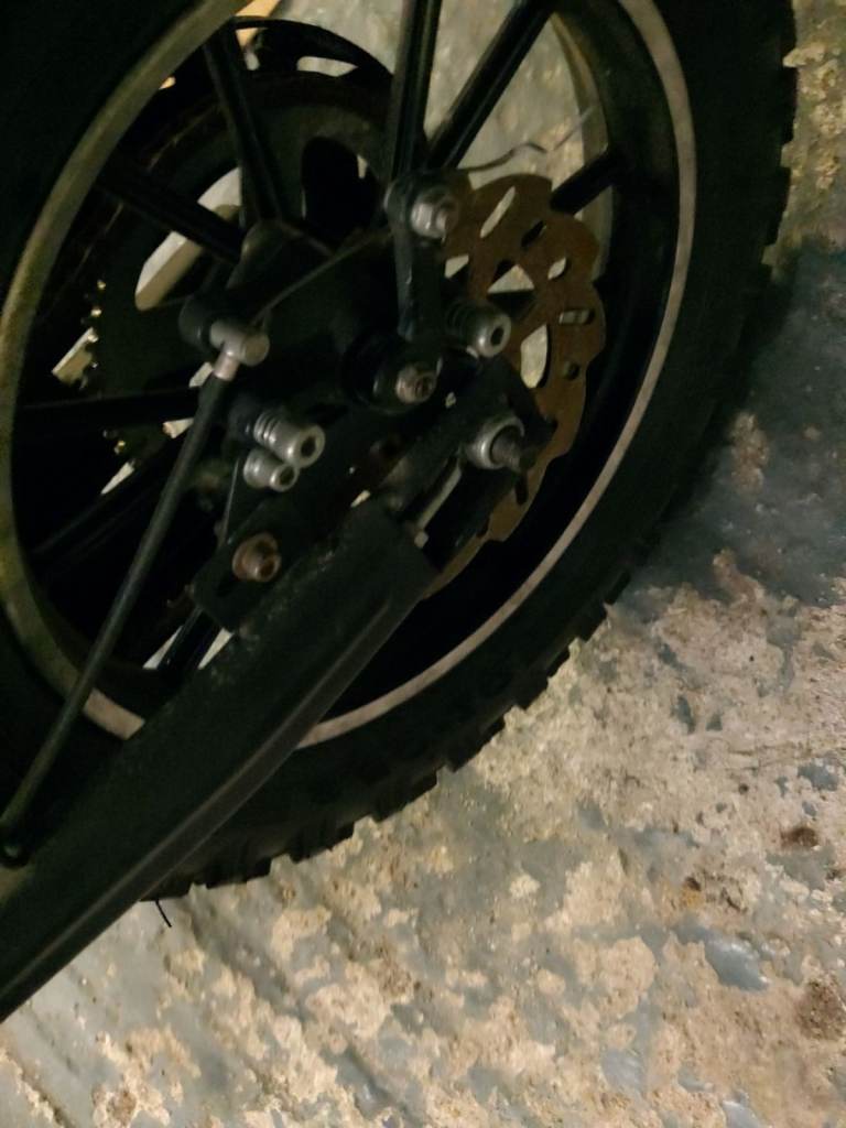 The bike is pretty much brand new as can be seen with the lack of use of the tires and the brake discs and fender kit are new and unused