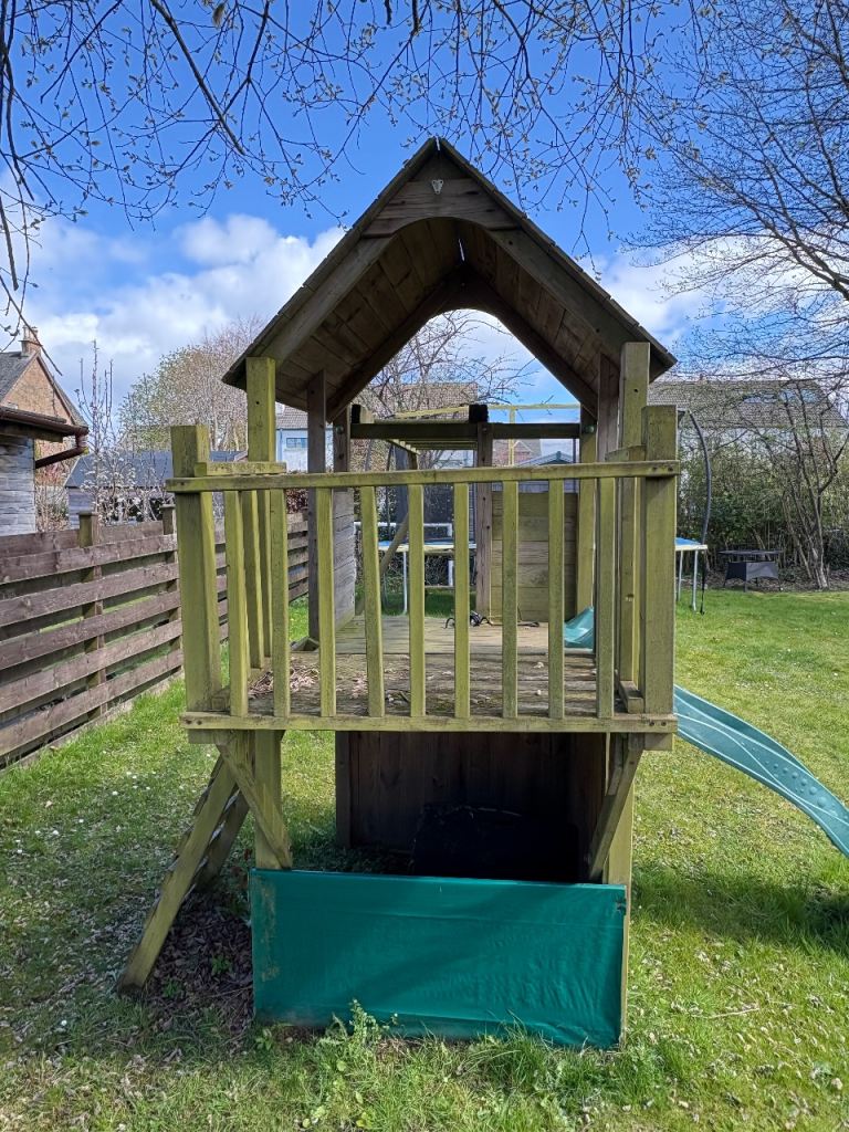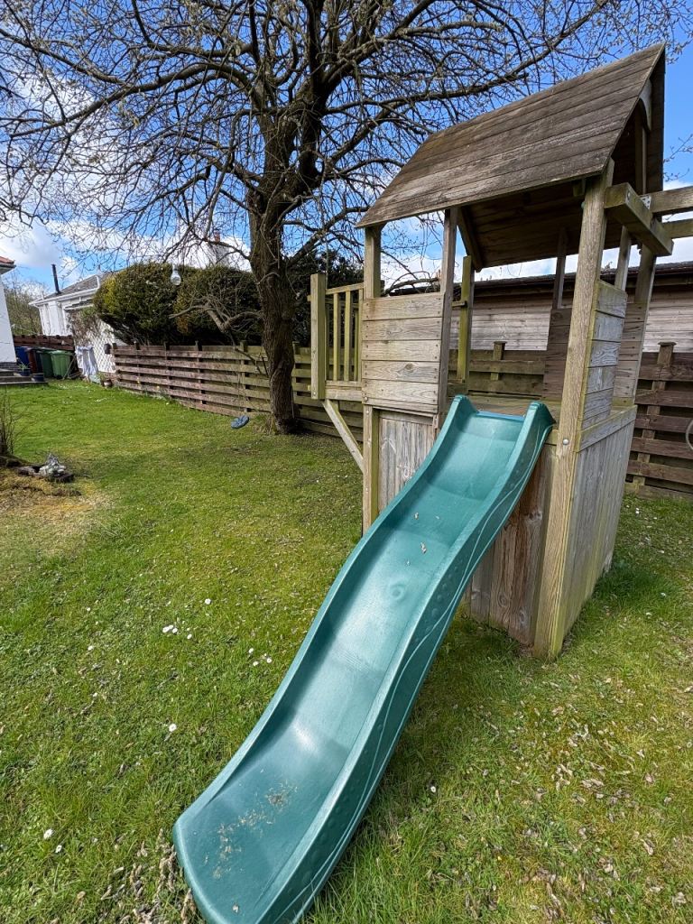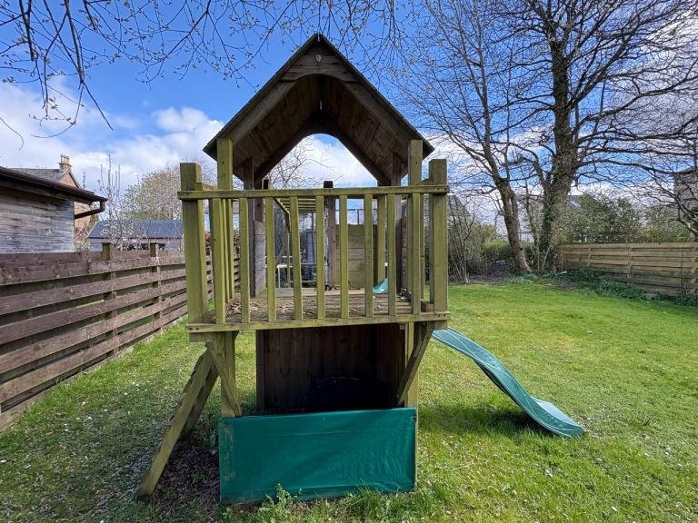 Used condition climbing frame with swings, slide, playhouse, monkey bars. Buyer to dissemble and remove.