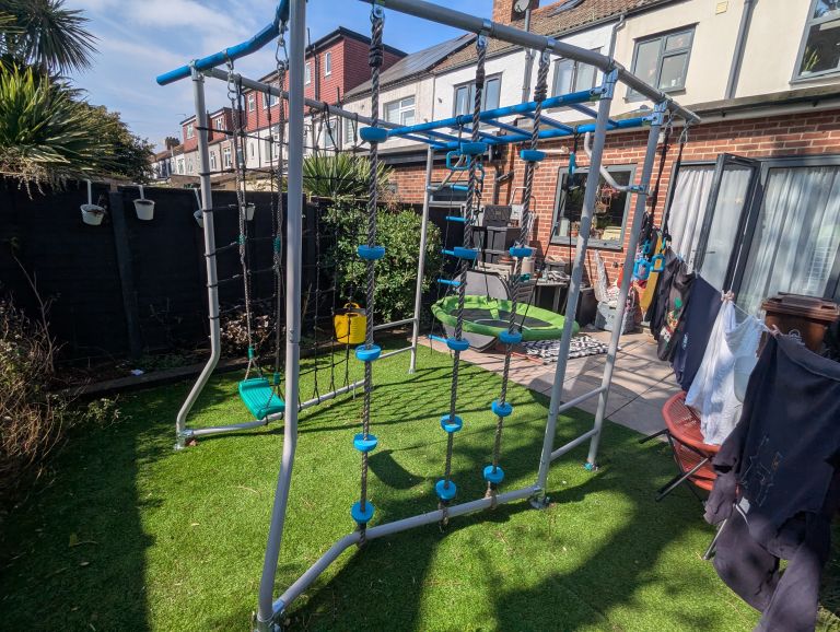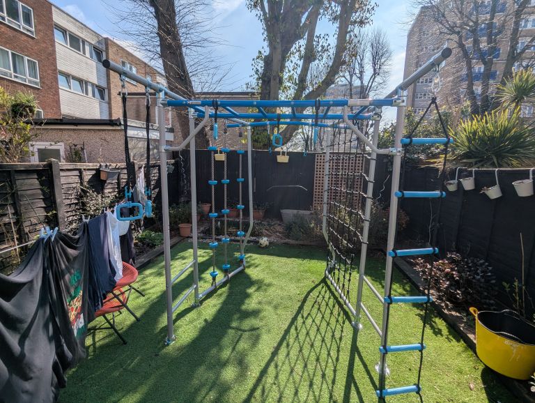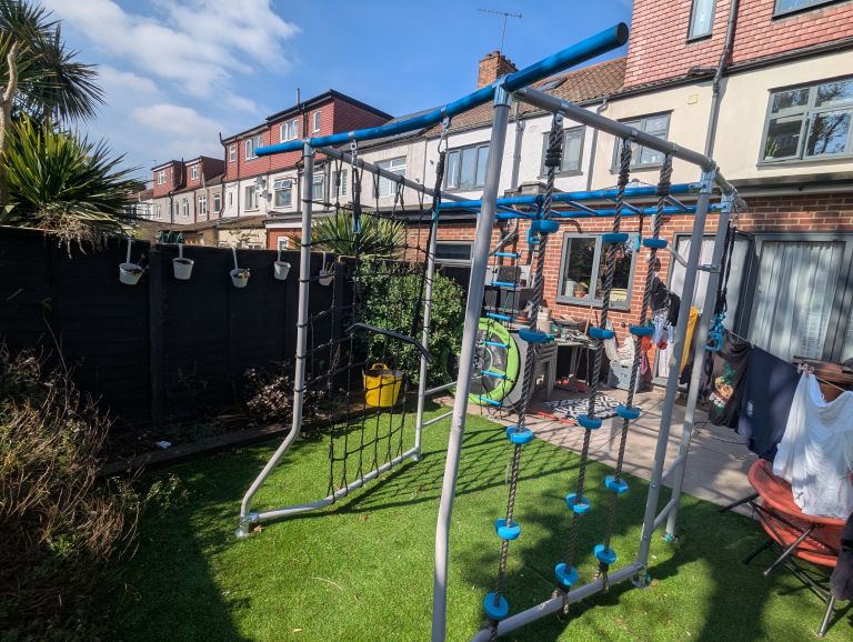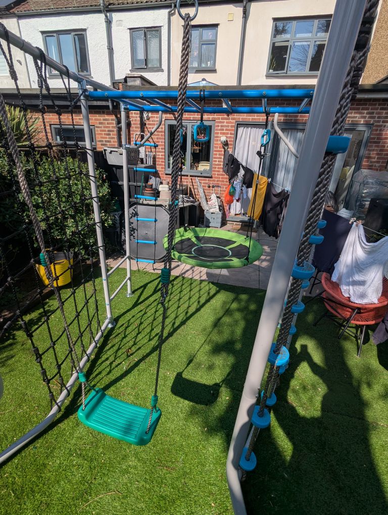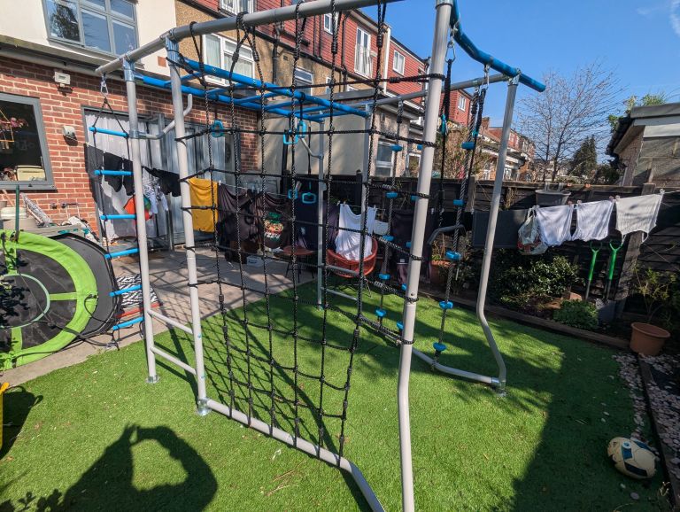 With a footprint of just 2.2 m × 1.9 m, this freestanding climbing frame includes a range of exciting features to keep your kids active, challenged, and entertained — without sacrificing valuable space.