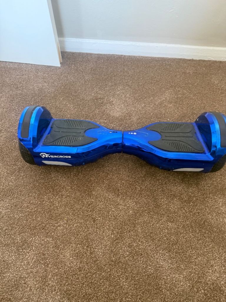 Selling my Evercross hoverboard in a stunning metallic electric blue. It has been well-maintained and is in great working order, ready for a new owner to enjoy!