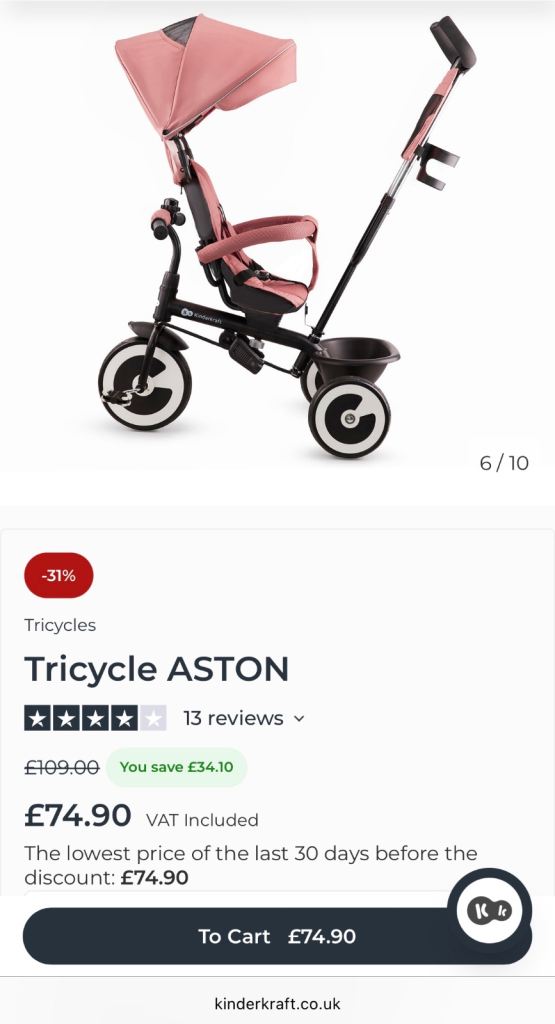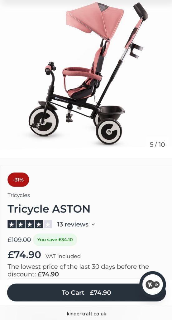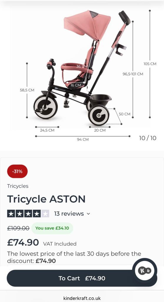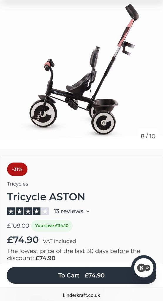 Kinderkraft Aston Tricycle In amazing condition. Currently retails for £75 on offer from original £109. Fully detachable parts as per website images. Collection only from Kings Lynn, £40.