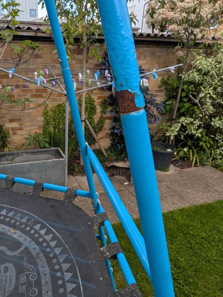 TP climbing frame..well looked after but has a bit of wear and tear from weather around paint work on a couple of joints. Otherwise in great condition. Comes with the platform and tent and the TP wave slide. They've lived in the garden for 3 summers so do have some wear and tear but have tears of life left in them.