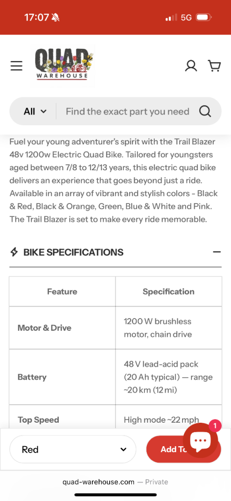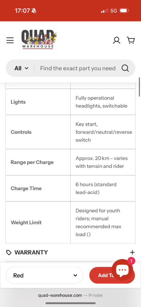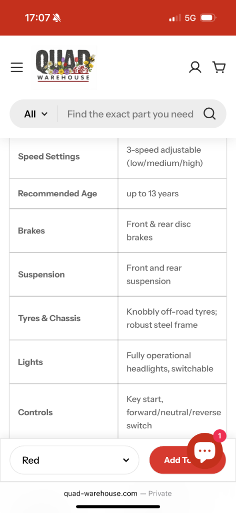 Looking to sell this quad was £800 when we got it for my boys for Christmas used it 3 times, the chain snapped off and we have never got round to putting the new chain on. Only issue is the new chain needs put on.