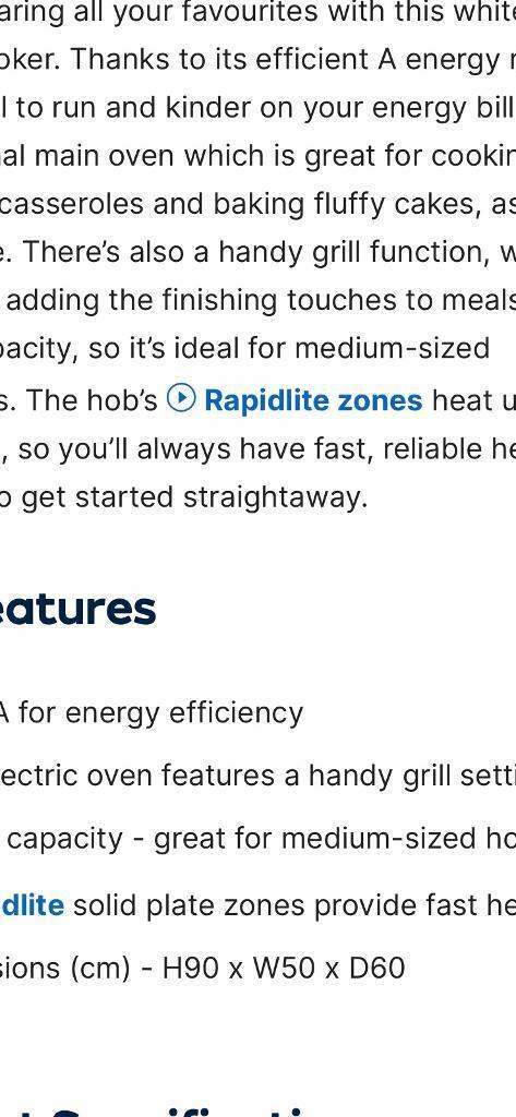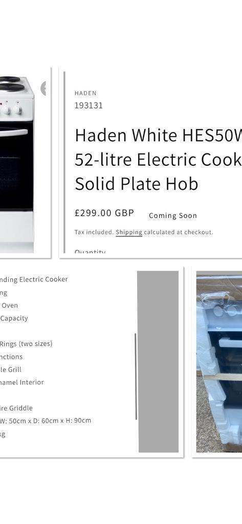 Beko electric cooker in white 50cm brand new still packaged can deliver at extra cost