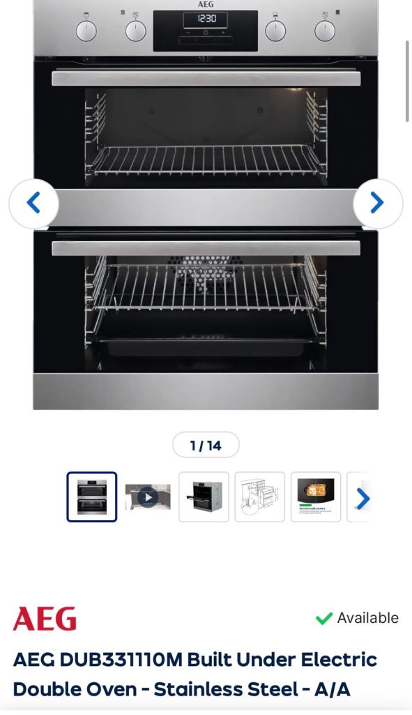 AEG DUB 331110M built under electric double oven- 6 years old. Well looked after. Super oven and grill.