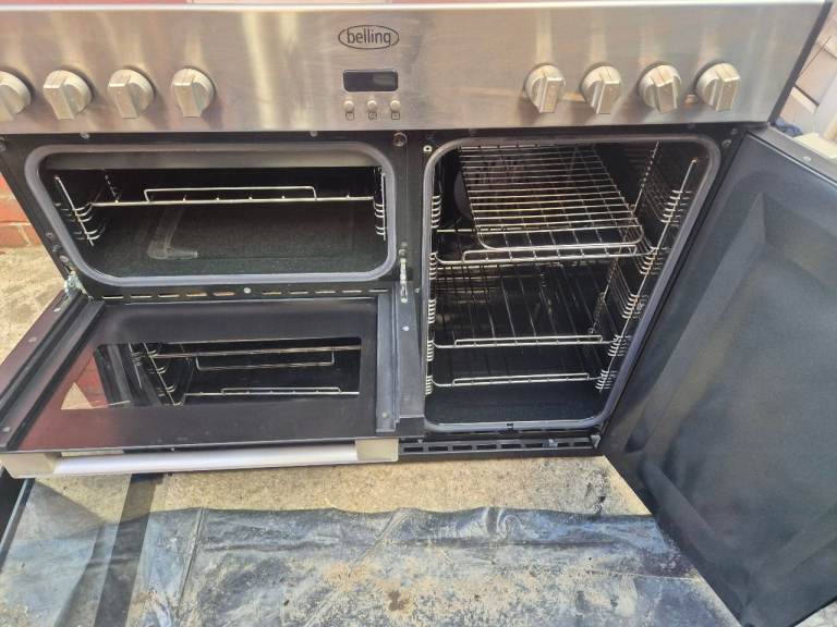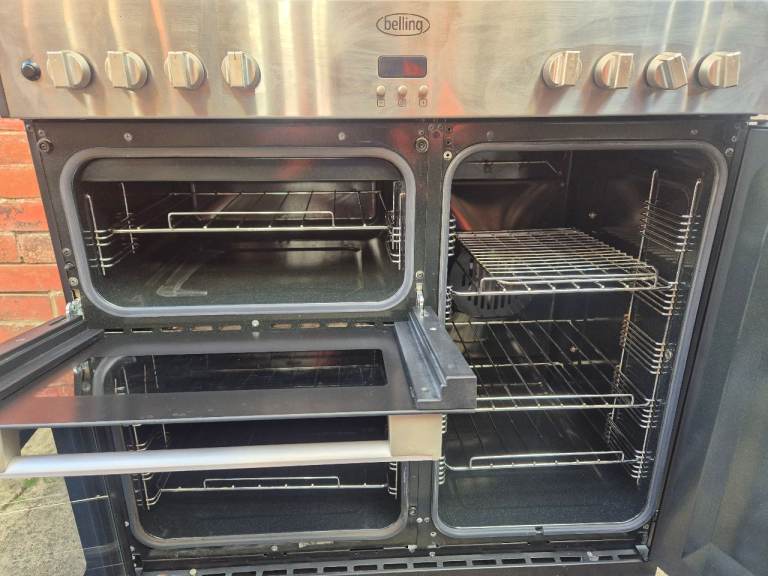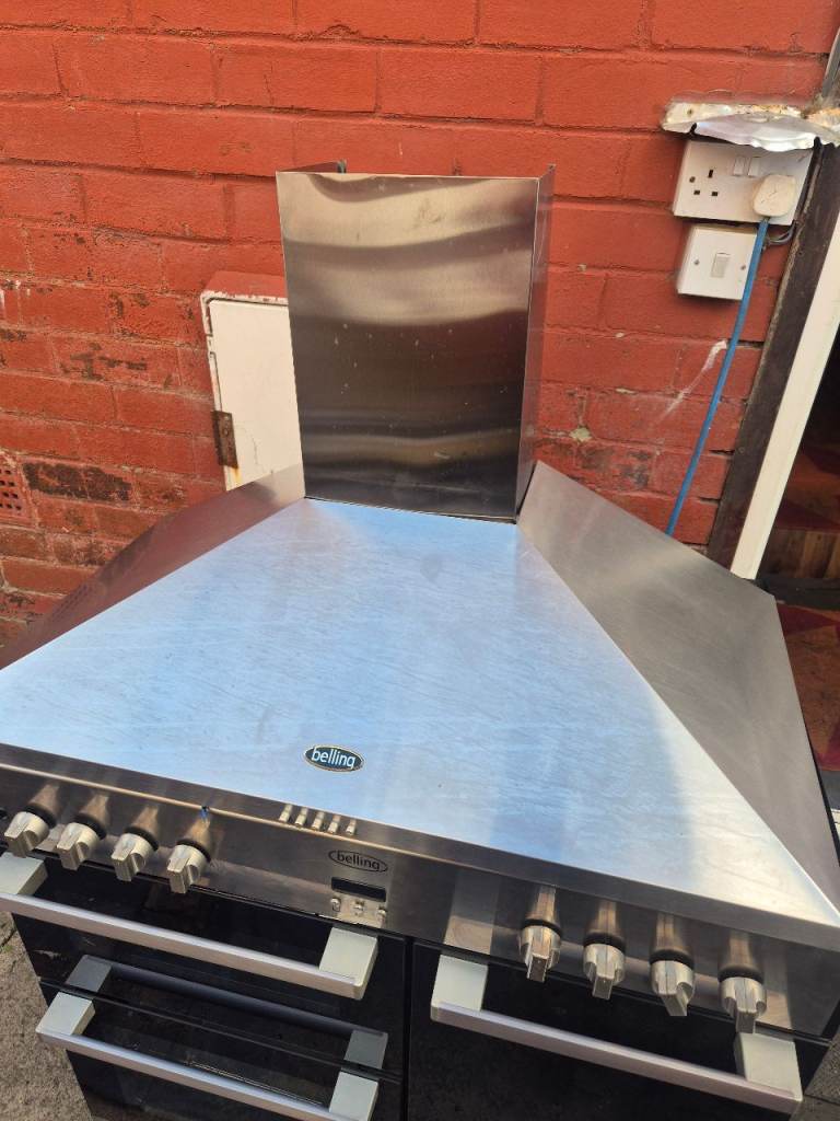 belling gourmet dual range cooker with cooker hood ready for use
