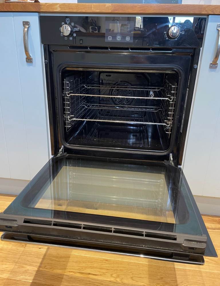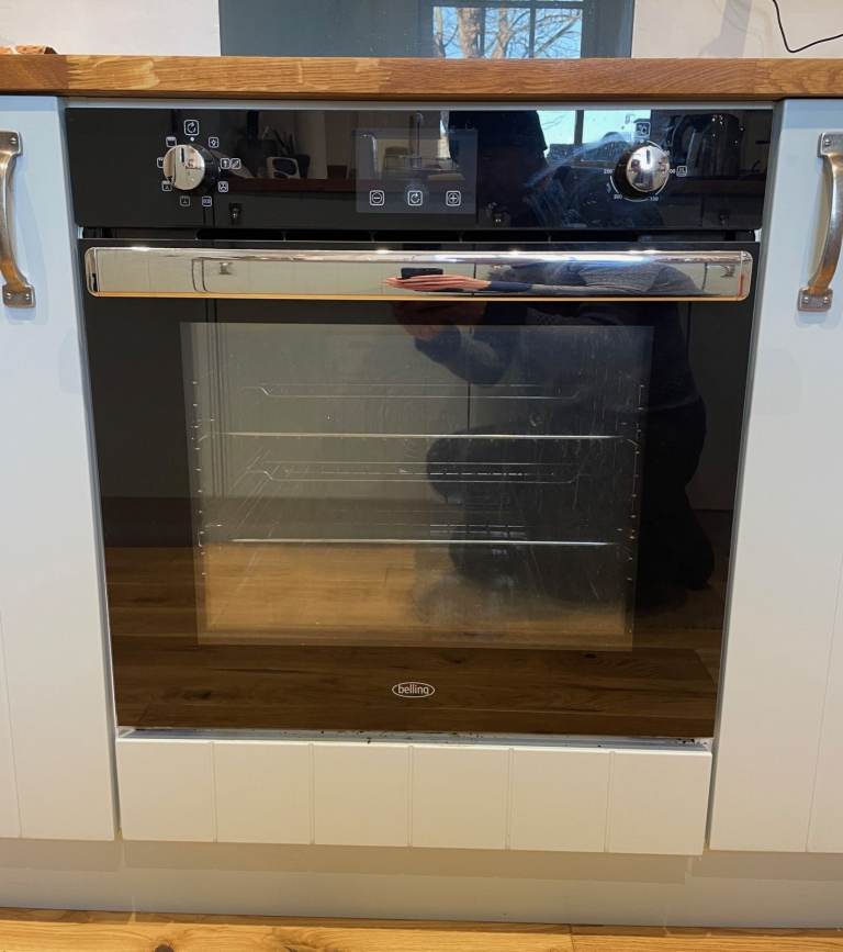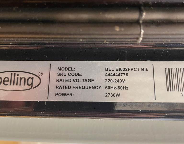 Belling Built-in Fan Oven/Grill. Model B1602FPCT. Fan oven with built in grill, 2 shelves. Has a 70 litre capacity, catalytic liner and double glazed door. In excellent working order. Requires hardwiring to a 13 amp fused spur. Recess dimensions: 600mm high x 560mm wide x 570mm deep. This is a current model and is available on AO for £240.