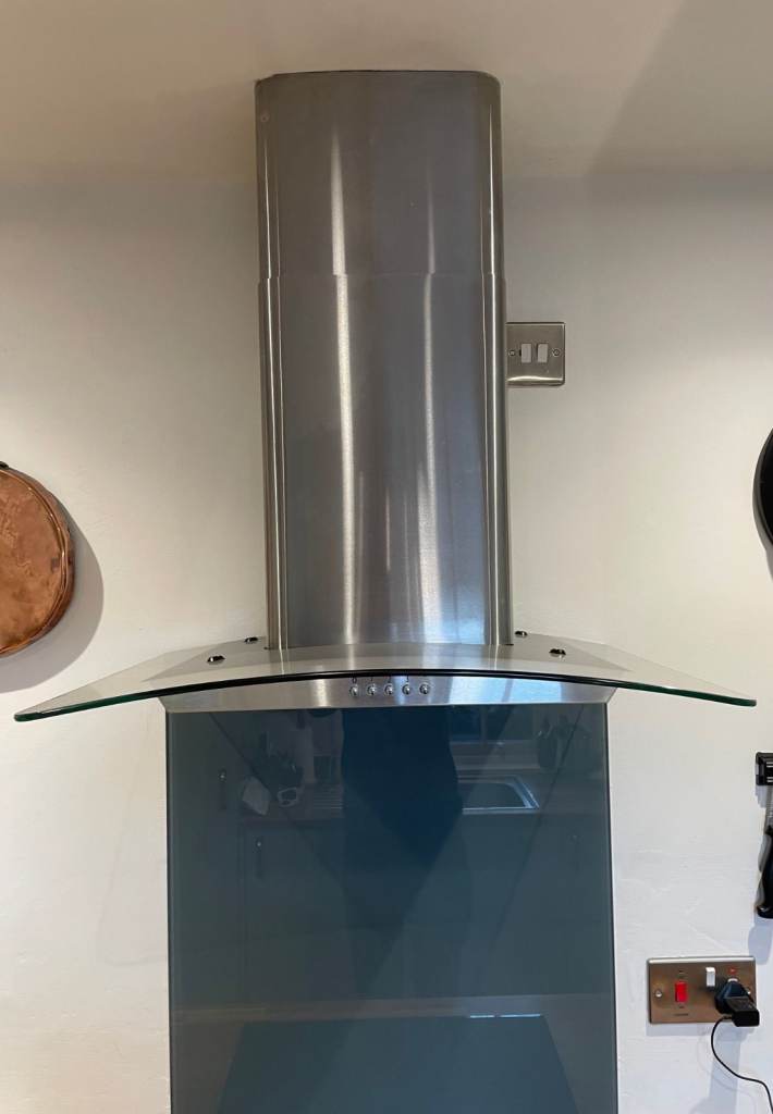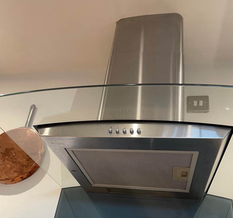 Recirculating cooker hood, with 3 fan speeds and light. 600mm wide, 490mm deep and 650mm high (the height looks to be adjustable). In excellent working order.