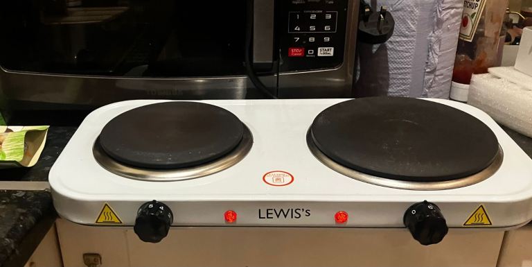 Lewis;;s double hot plate brand new in the box duel thermostatic control colour white 2500watt