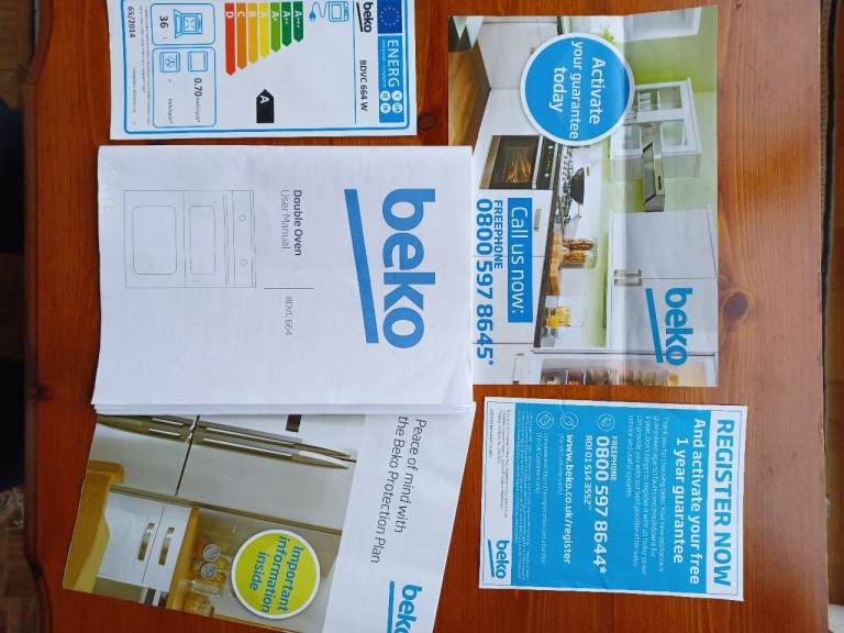 In very good order with minimal use. Very clean interior with no grease or grim! Comes with full BEKO user manual and supporting information. Energy efficiency grade A. Programme timer and LCD clock. Two ovens with enamel lining. Easy clean.