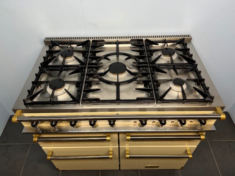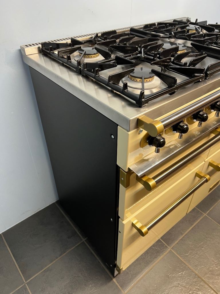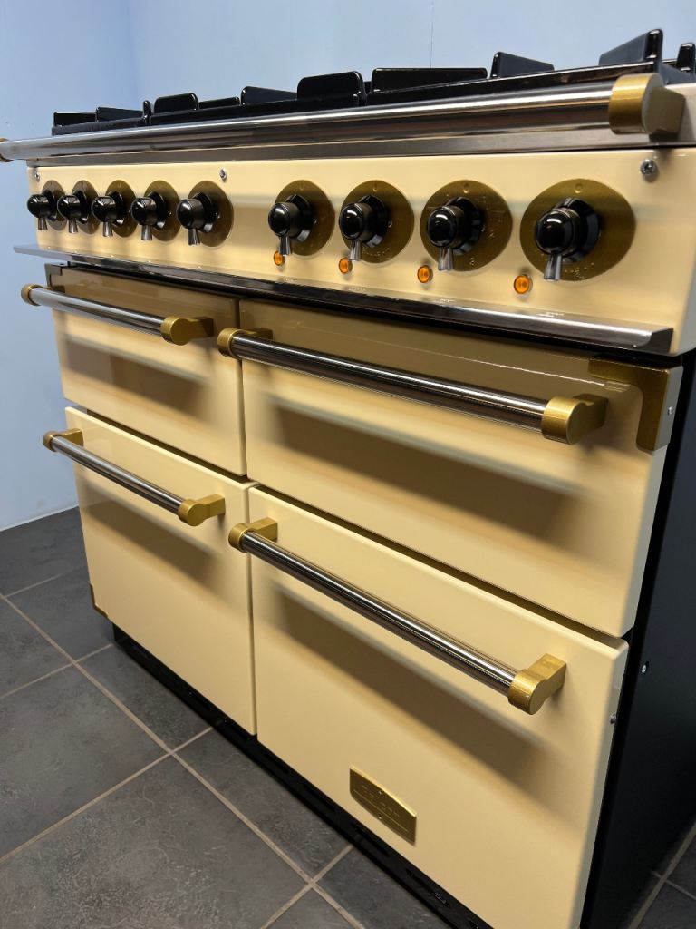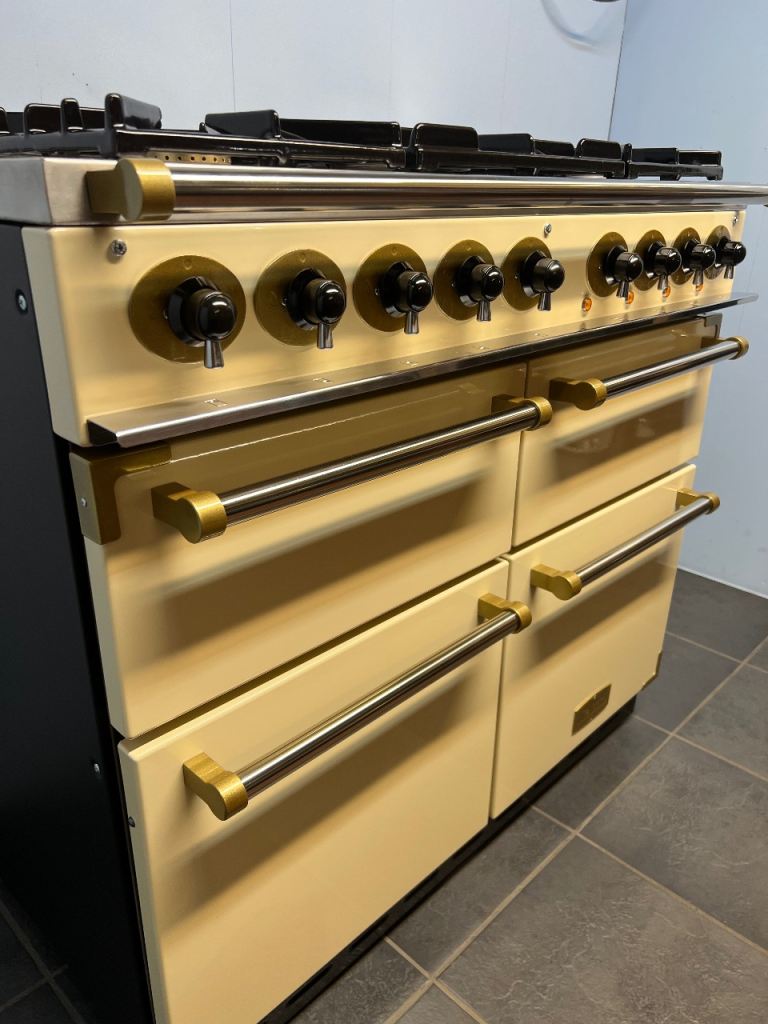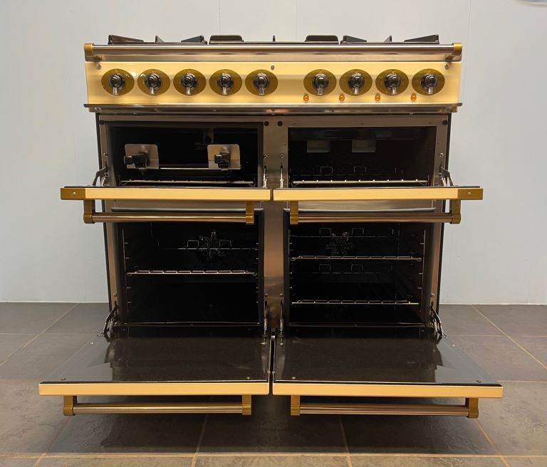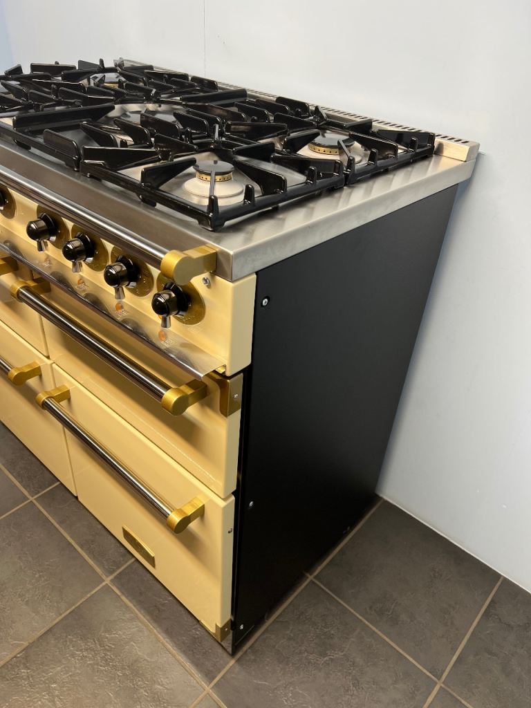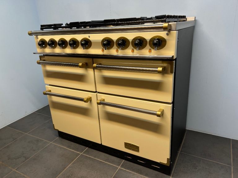 FALCON DELUXE 100 CM🔥LPG DUAL FUEL⚡️RANGE COOKER IN CREAM AND GOLD TRIM