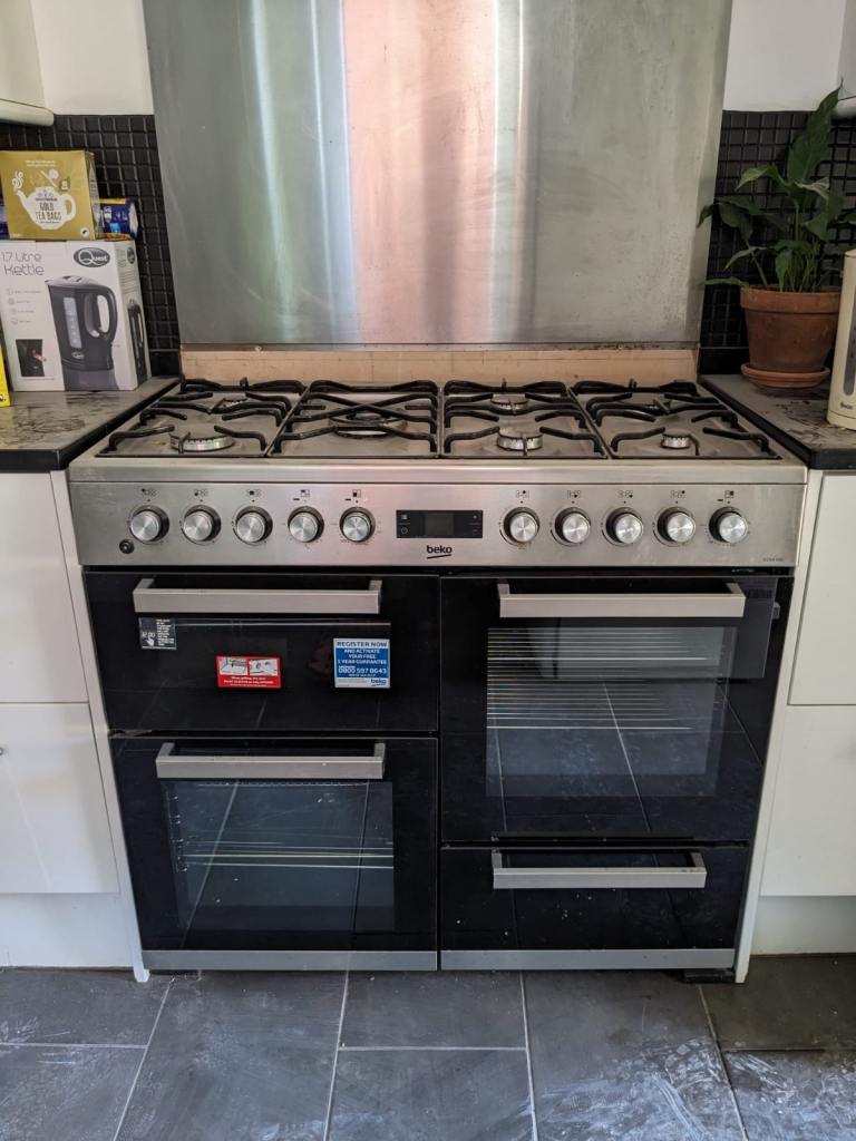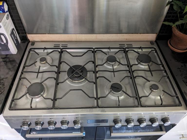 Beko 7 double oven range cooker with 7 burner gas hobs.