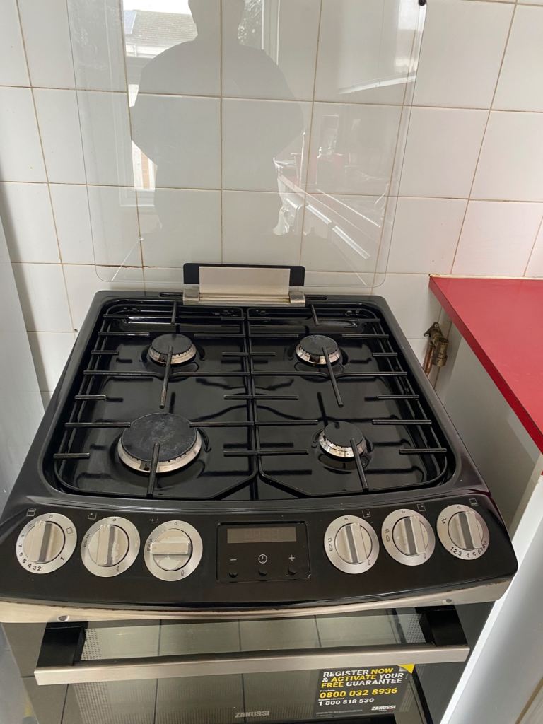 Free standing double oven gas cooker with Integrated electric grill and 4 gas burner hot plate. Automatic ignition and flame safe ceramic lid. Zanussi model number ZCG4235 0X.90cm high x 55cm wide x 60cm depth. Catalytic assisted oven cleaning, oven light, rotary dial controls, energy efficient rating A. Excellent condition. Cost new £575. Accept offer over £75.00. Buyer to collect from NR4 Eaton Rise Norwich.