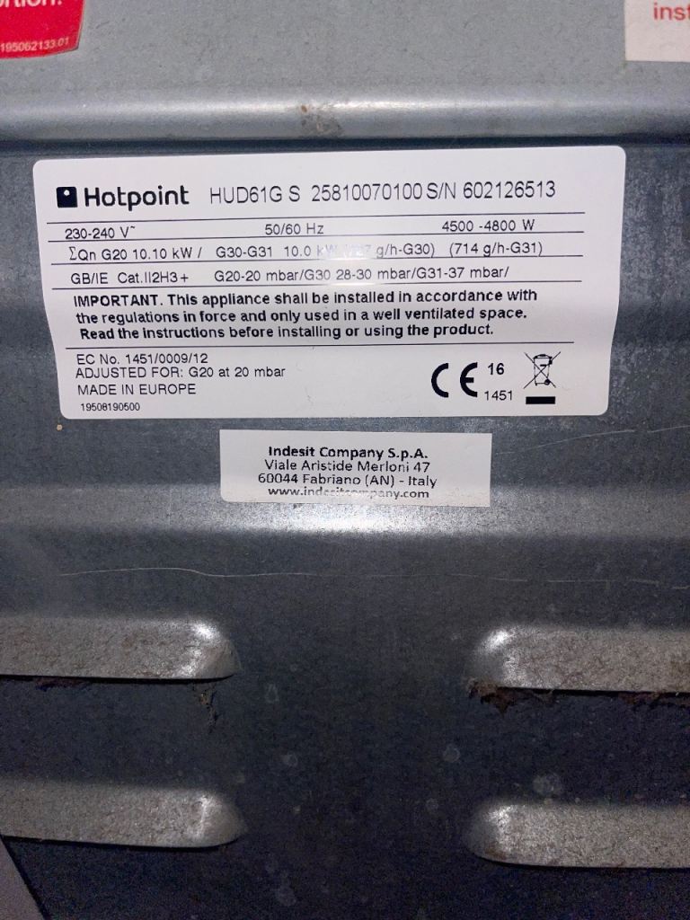 HOTPOINT dual fuel cooker gas hob electric oven and grill good clean working condition