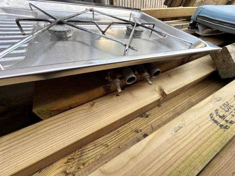 Sink and hob ideal for a caravan motor. Home conversion is missing the knobs for the cooker.