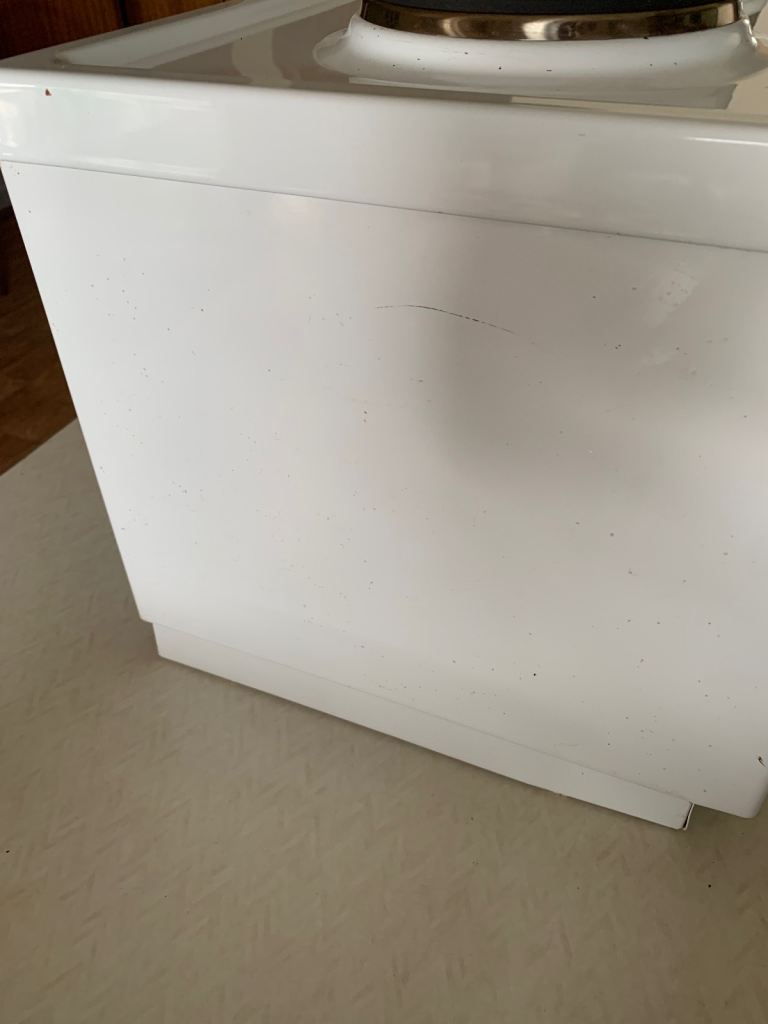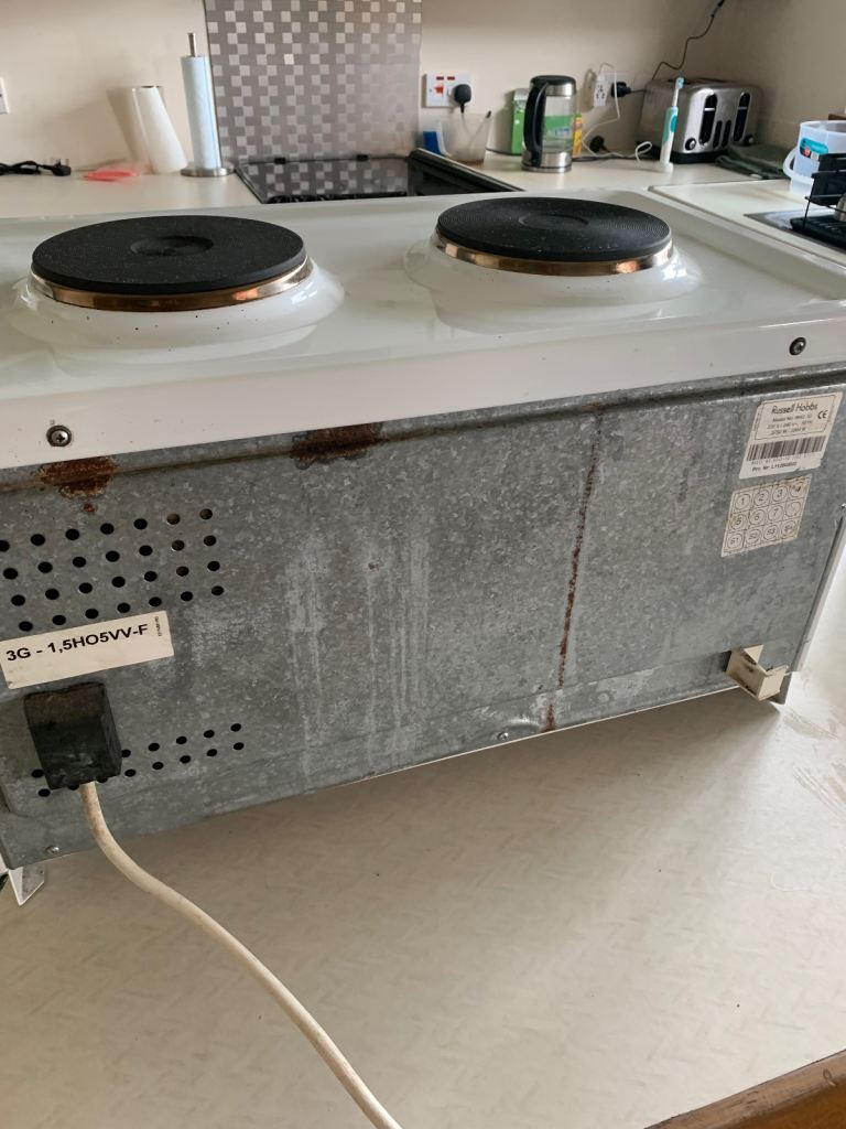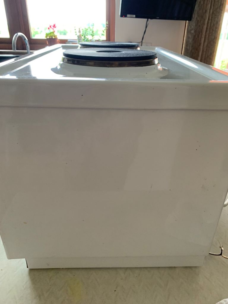 Used with some very minor chips to enamel but in clean and excellent working order with oven and both hobs having been fitted with new heating elements in December 2024.