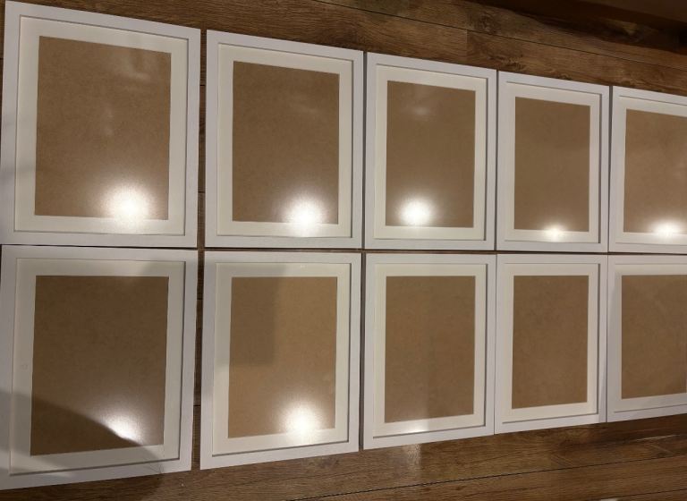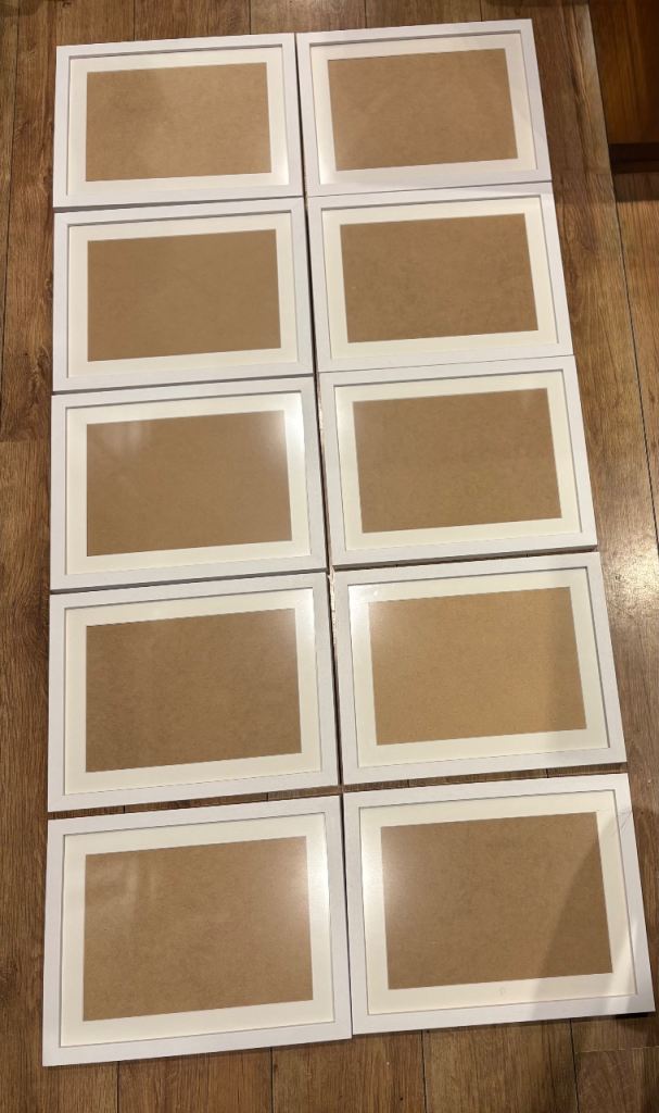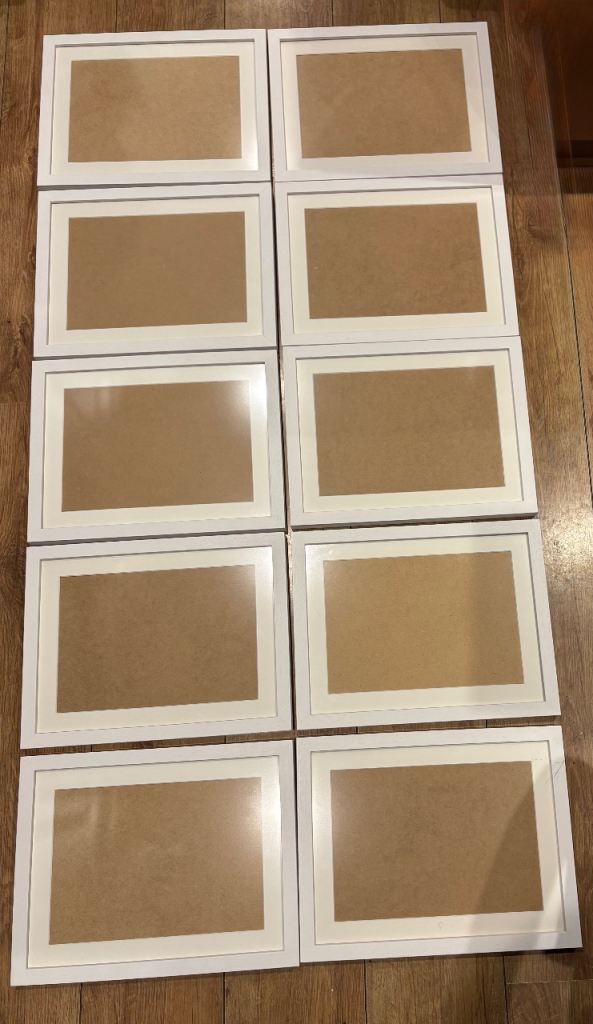 10 white wooden picture frames perfect for certificates , pictures. I put some measurements in the pictures . Collection only please from NW6.