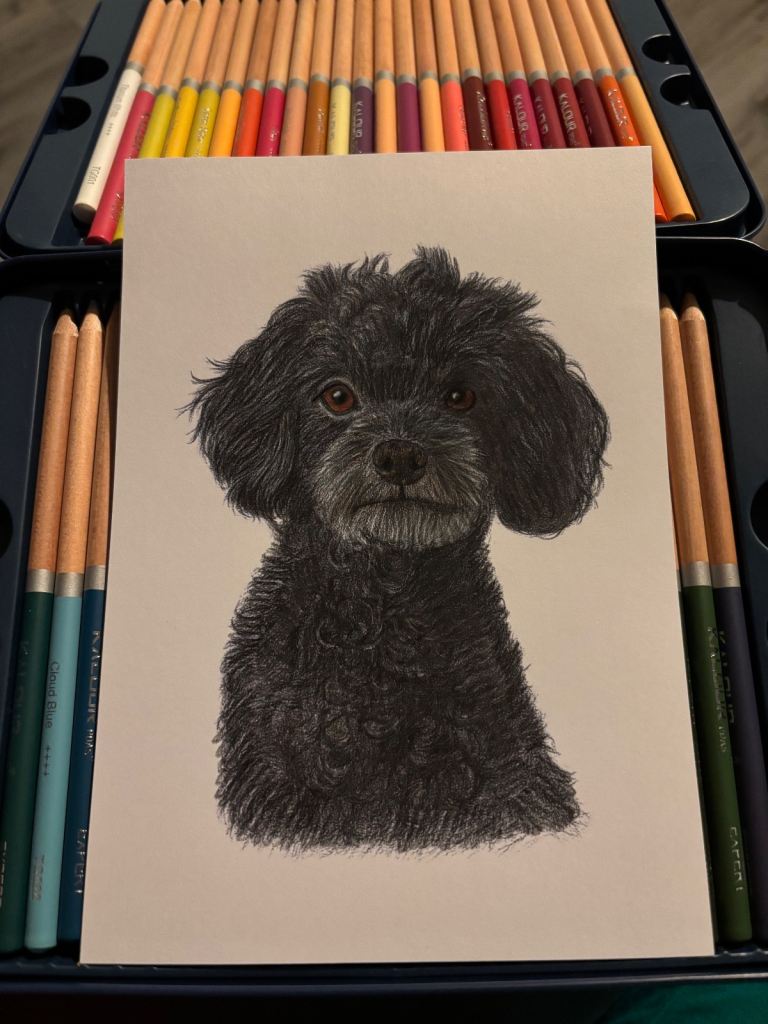 A5 coloured pencil pet portraits, price is per pet, the max that would fit on A5 would be 2 pets. So you may want to stick with just the one pet on each portrait this size. Turnaround 1-2 days. Payment is upfront, you can either collect when it’s ready for collection or I can post for an additional £3.