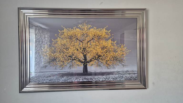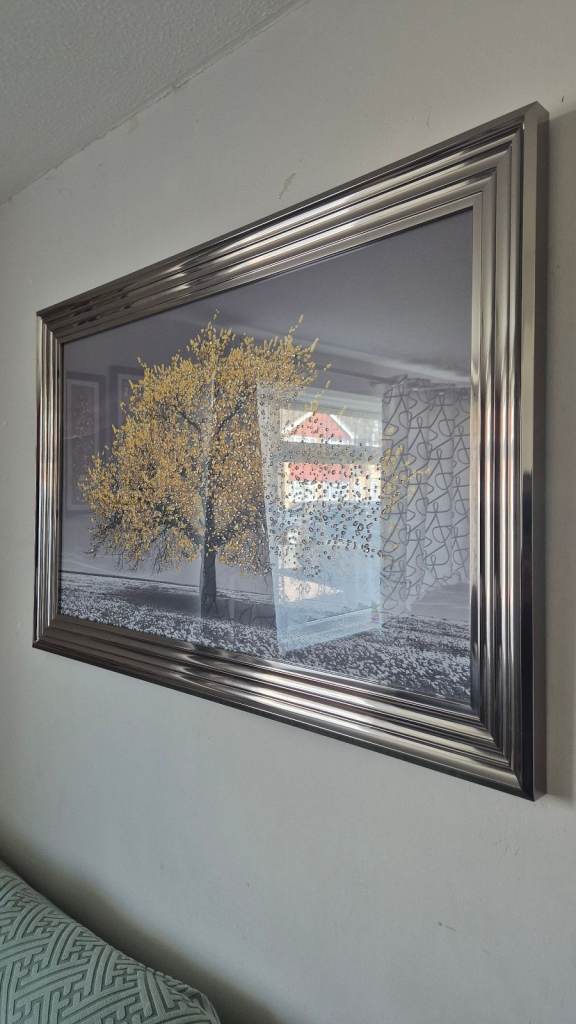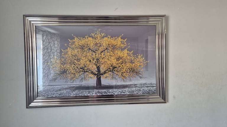 Wanted to sell wall art NEW. It got sparling feaure painted. Its absolutely gorgeous. We got 2 identical Gifts.. Selling this one. NEW Completely packed in the package. Picture shown which is we have in our living area.