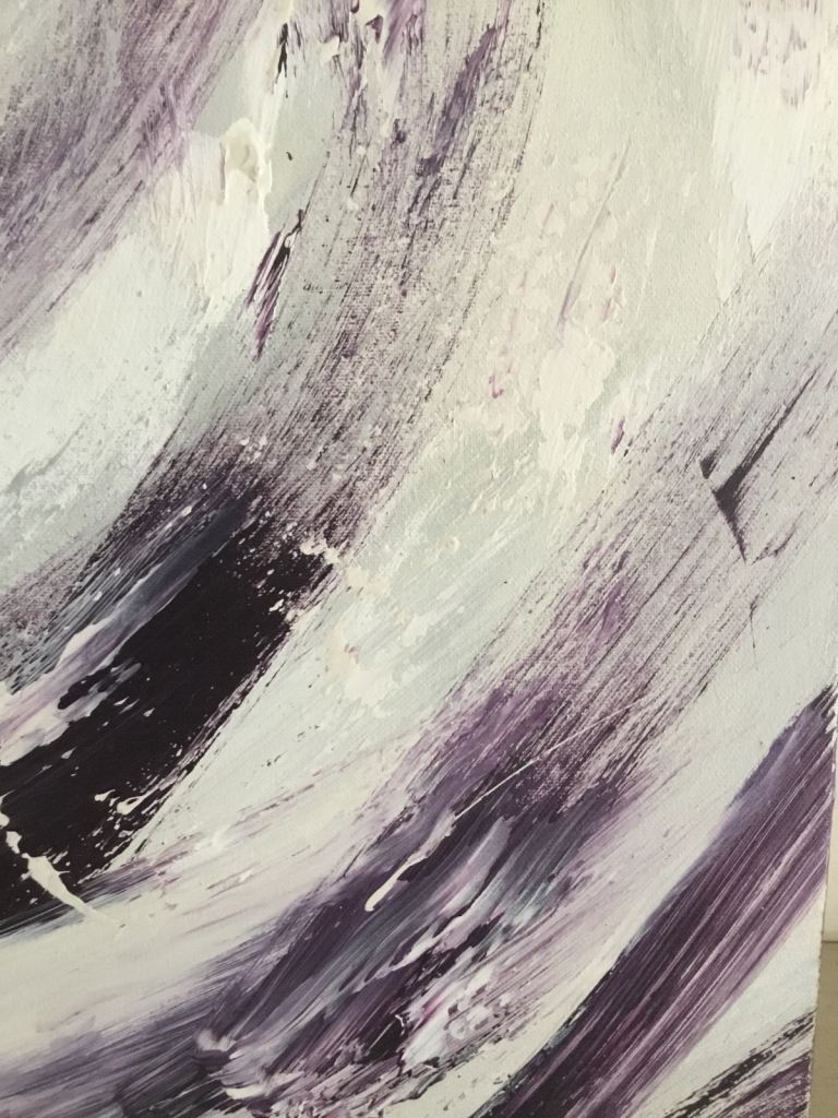 Large abstract oil on canvas. Purple and grey.