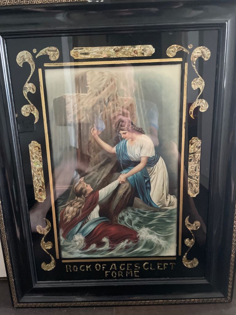 Antique Victorian Reverse Glass Print – Rock of Ages