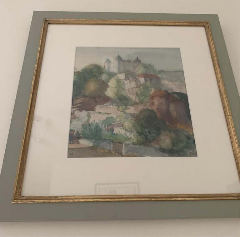 BEAUTIFUL FRAMED CASTLE AND PEASANT WATERCOLOUR PAINTING