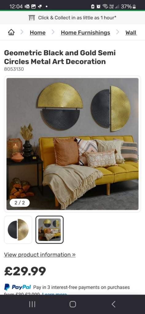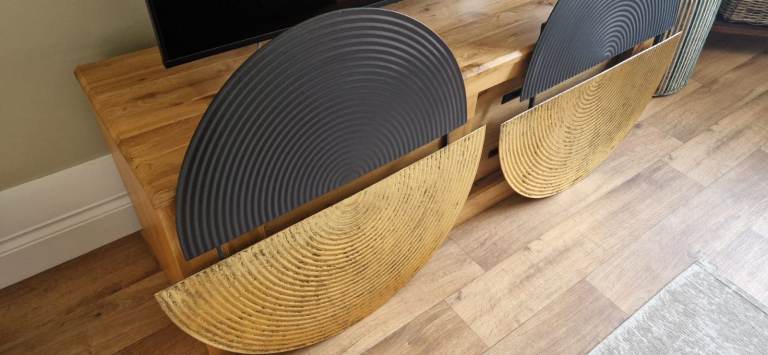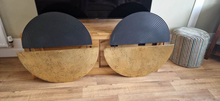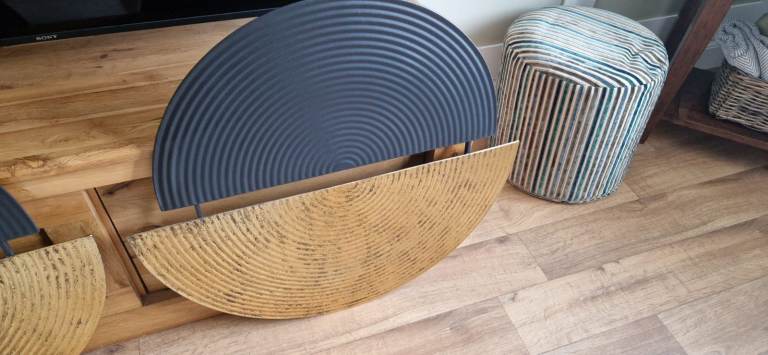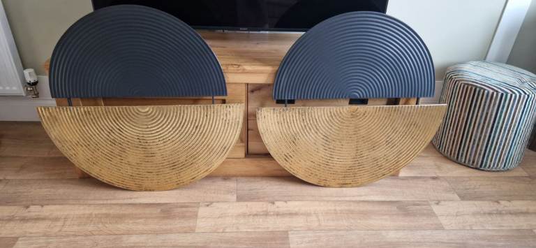 2 x Geometric Black & Gold Metal Wall Art. Lovely condition. Can be hung in many positions thanks to the square frame on the rear. Size is 76x80cm. Sold as a pair.Purchased for £29.99 each, still being sold in shop now so the pair for £20 is a great saving. Collection only.