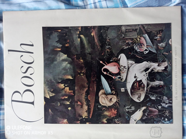 16 plates of heironmus Bosch,,old album,all prints can be removed easily to frame seperatly,,,front cover is also removable print £10 ...to clear..basford,,tram route
