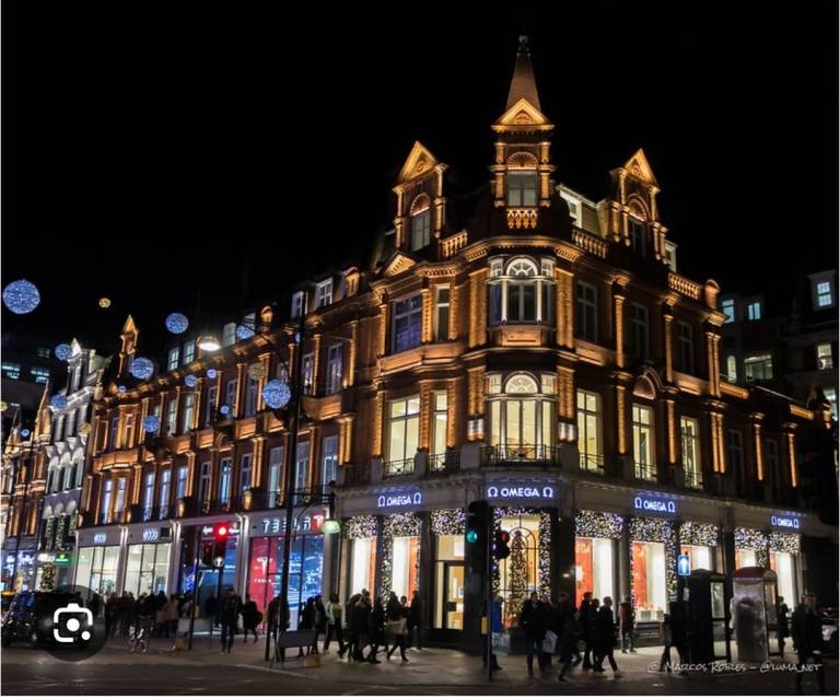Omega is a renowned Swiss luxury watchmaker, and their presence on Oxford Street reflects the area's high-end retail offerings.