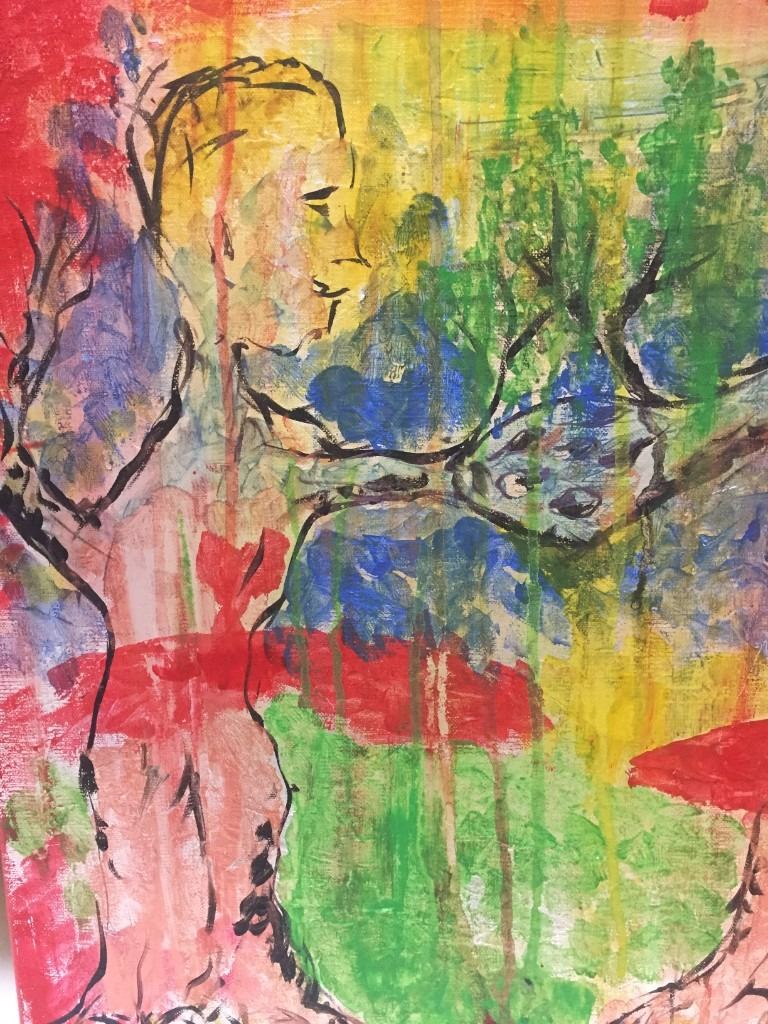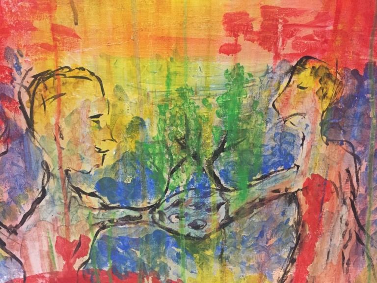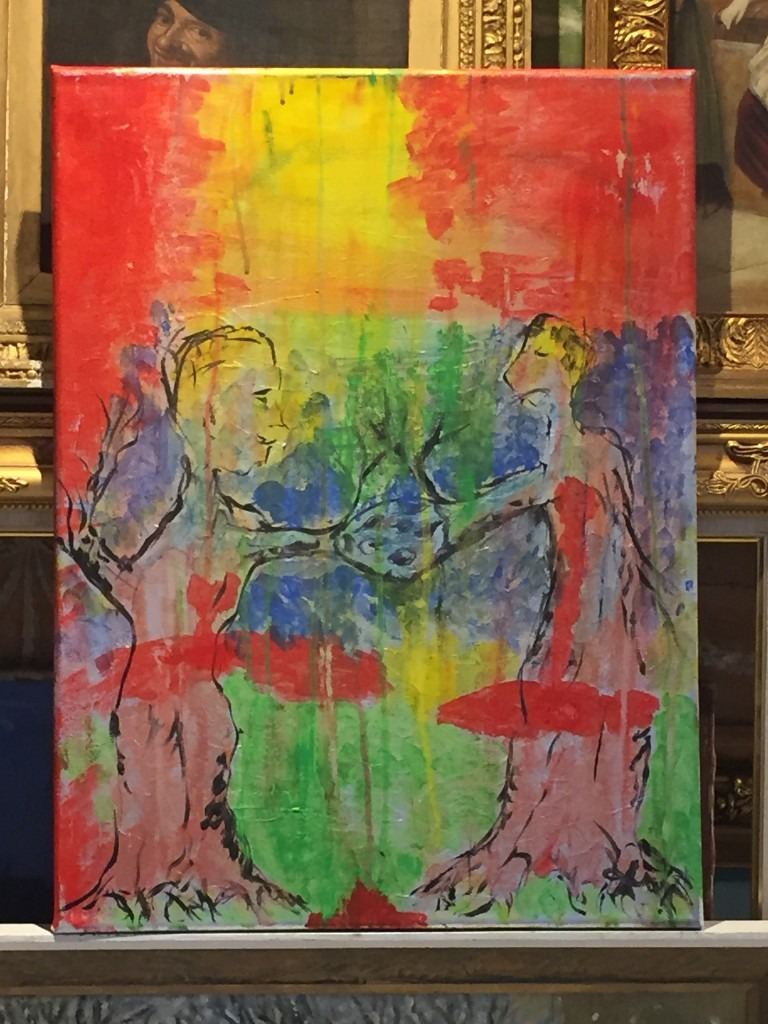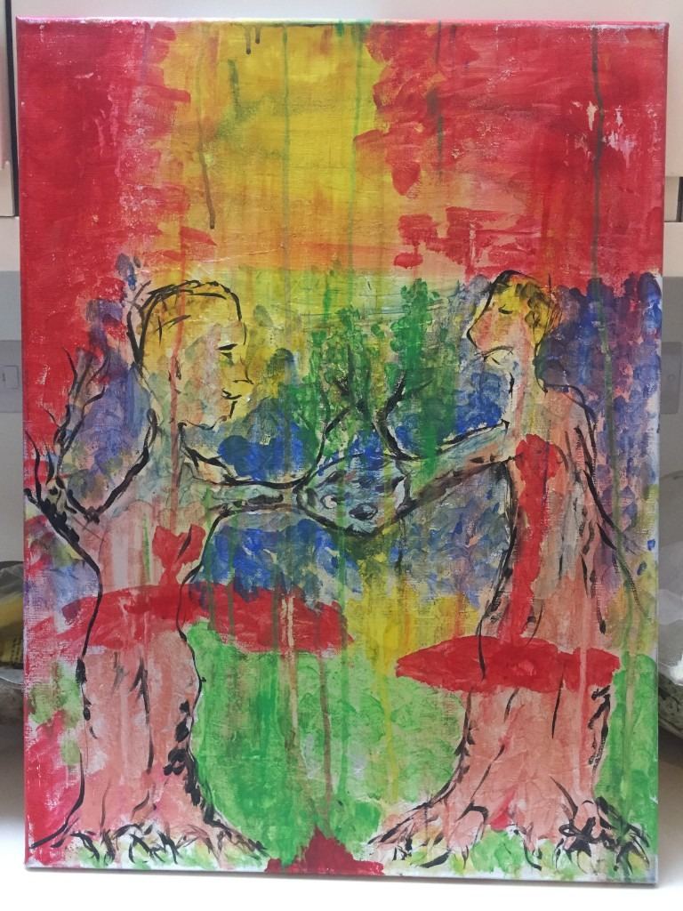 Chagall 'style' painting, original oil on canvas, vibrant colours, canvas 24 x 18 inches
