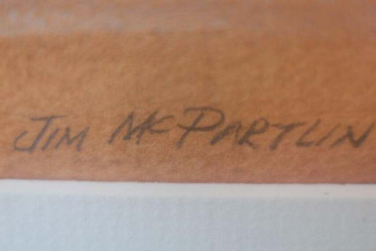 The frame measures 27.5 x 24 inches, the painting itself is 16.5 x 7.5 inches.
