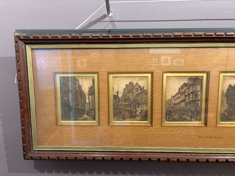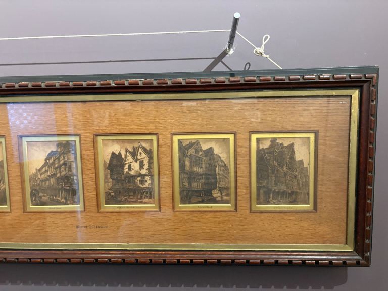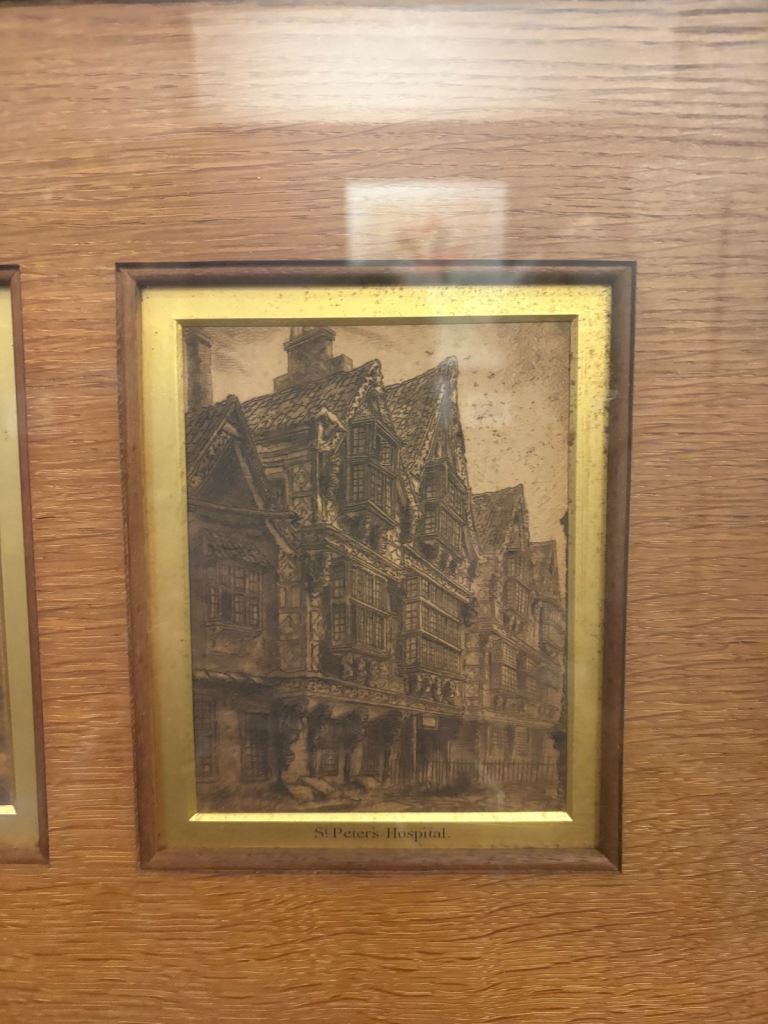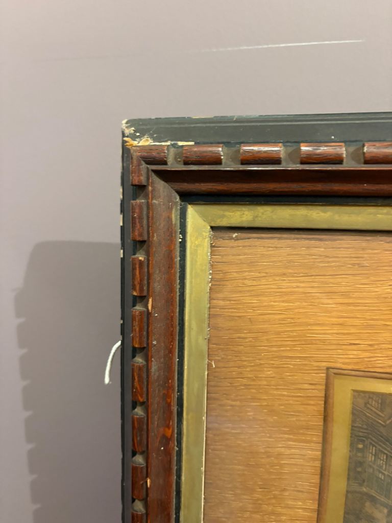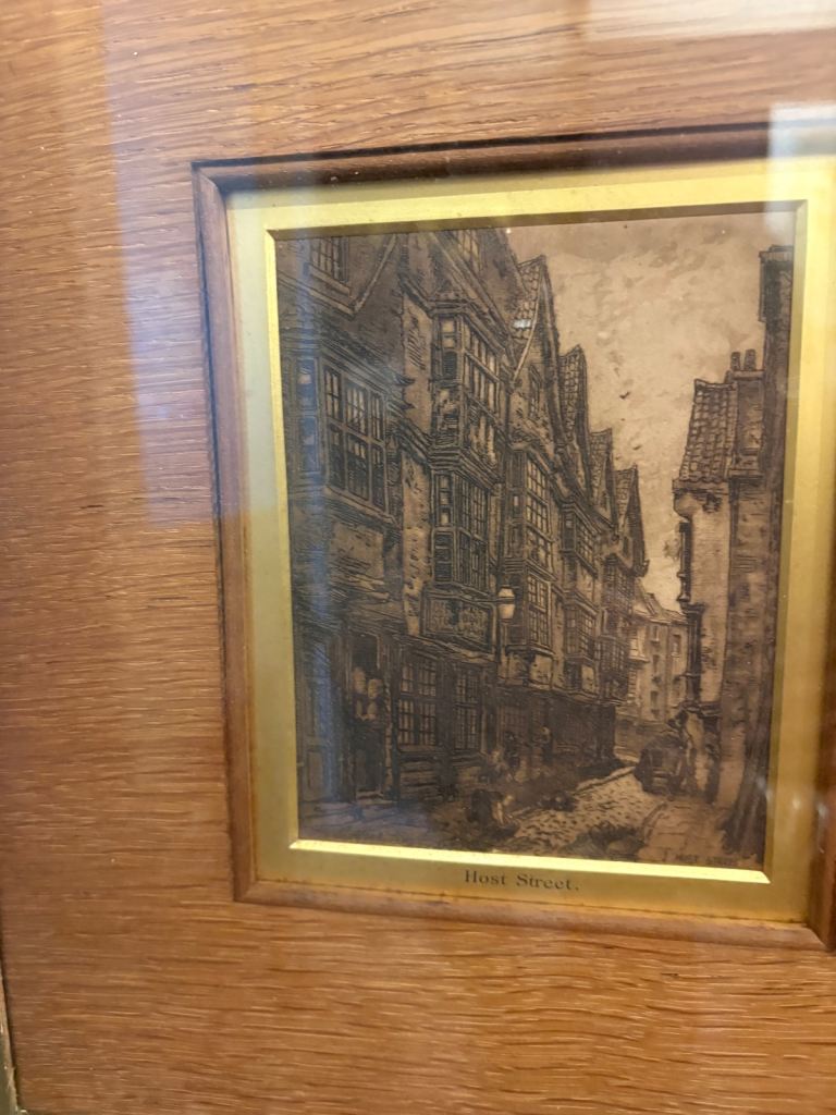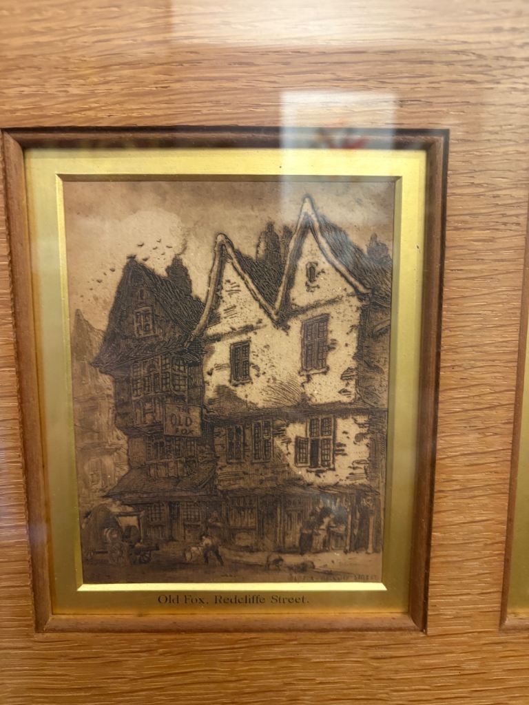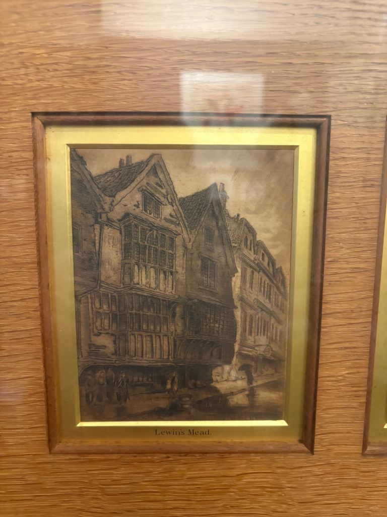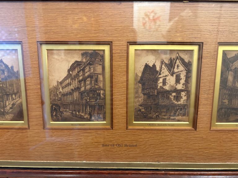 Vintage decorator’s piece. Fabulous frame of “Bits of Old Bristol - Host Street/Steep Street/Broad Street/Old Fox - Radcliffe Street/Lewin’s Mead/St Peter’s Hospital. This vintage piece does show signs of its age, but makes it all the more authentic and charming. Fabulous on its own or as part of a gallery wall.