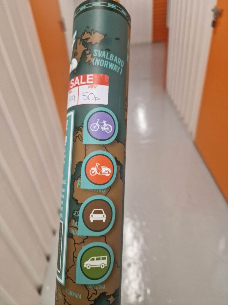 Deluxe scratch-off world map poster in original storage tube. Still rolled up and unused.