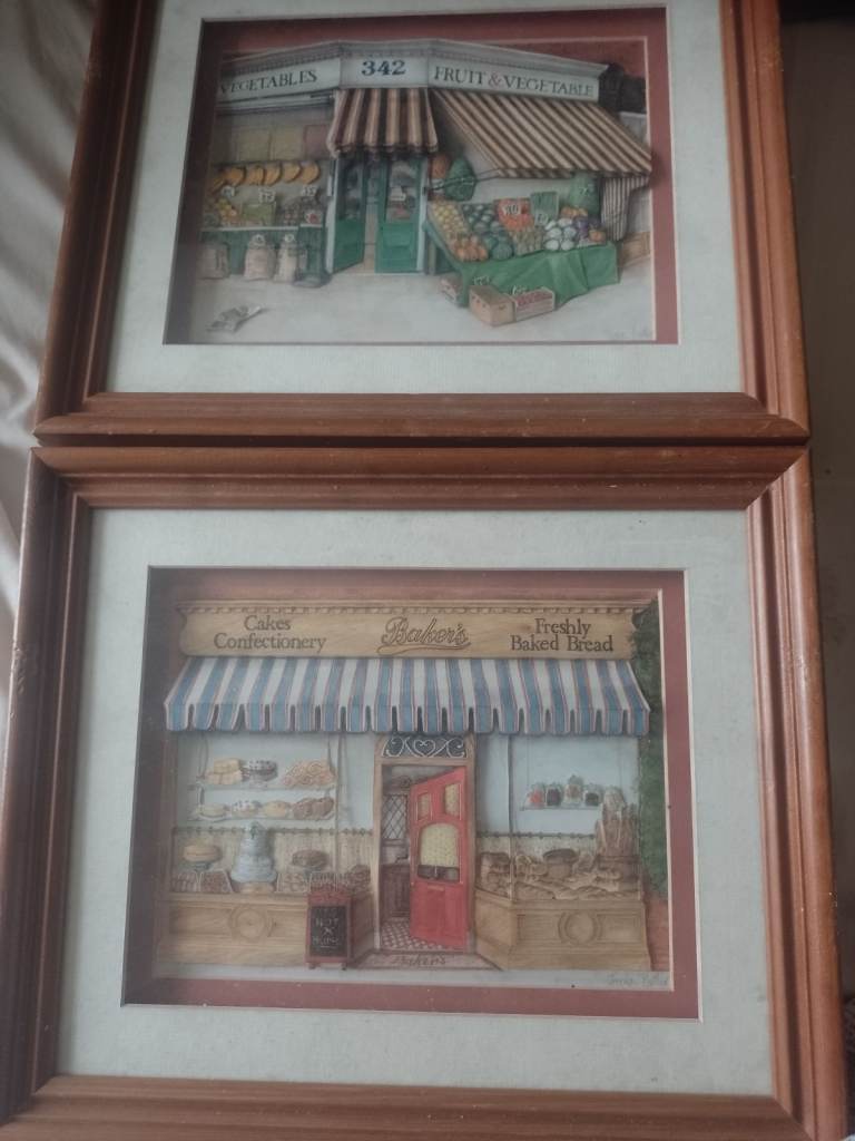 Pair of framed pictures, measuring 17x17 inches each. Excellent condition, collection from G43