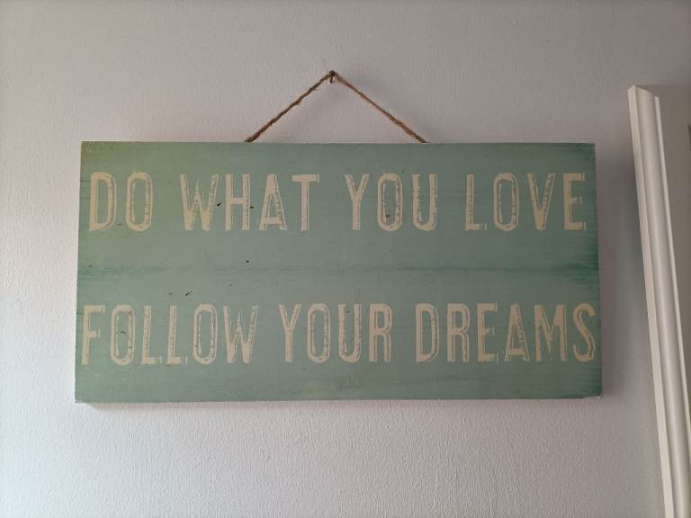 This is a lovely wall hanging with an inspirational quote. Suitable for any room! A perfect present.
