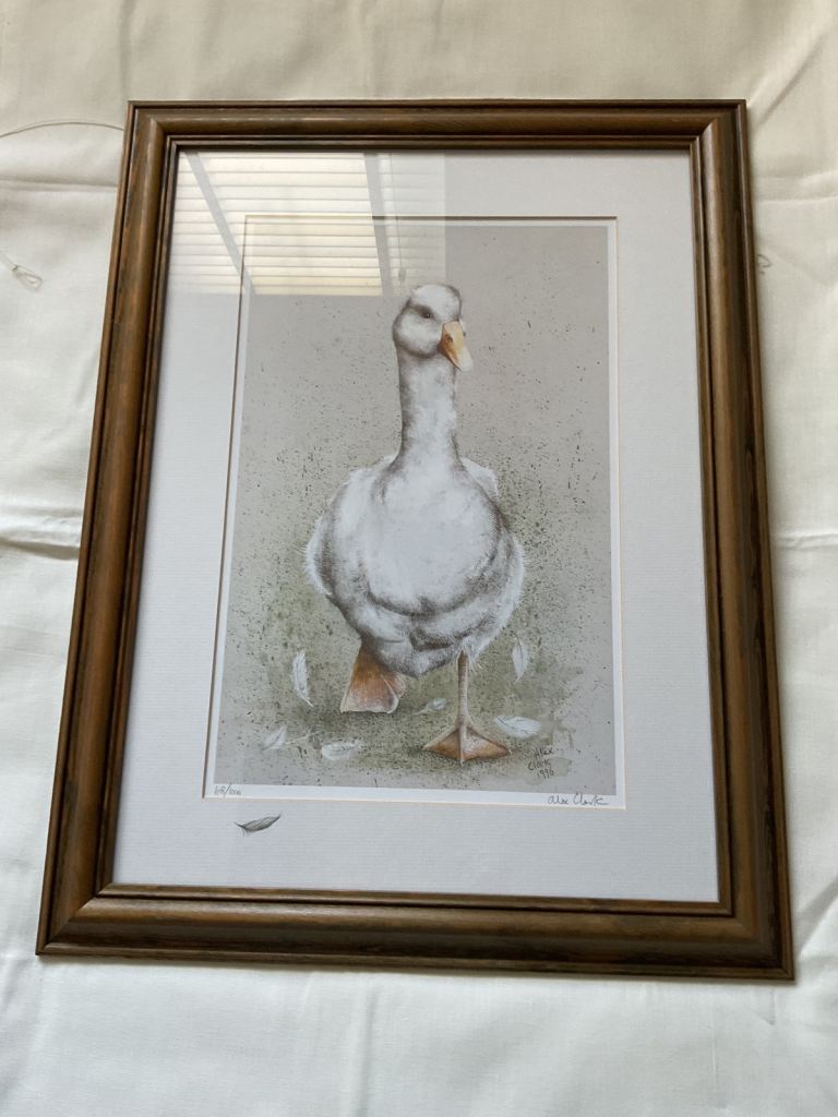 Limited edition print from an original watercolour by Alex Clark, “ Goose”, measures69cm x 49cm, in mounted glass frames, excellent condition, buyer to collect.