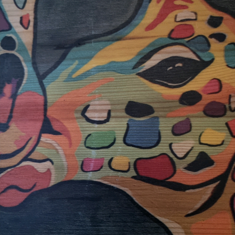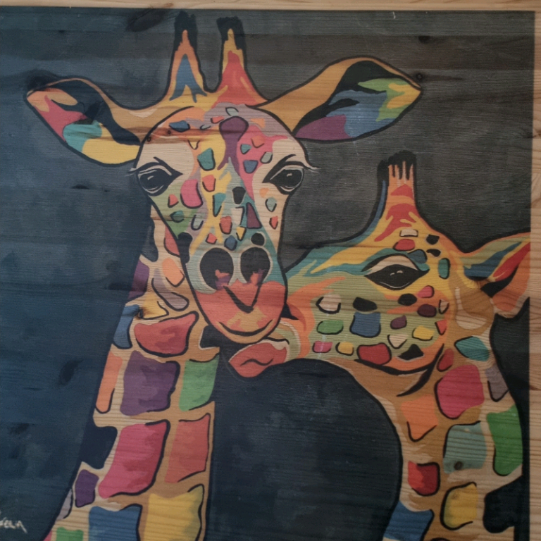 Francie and Josie McZoo, Steven Brown Giraffe print, art on wood