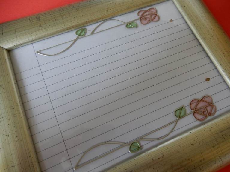 MacIntosh decoration on each side of the glass