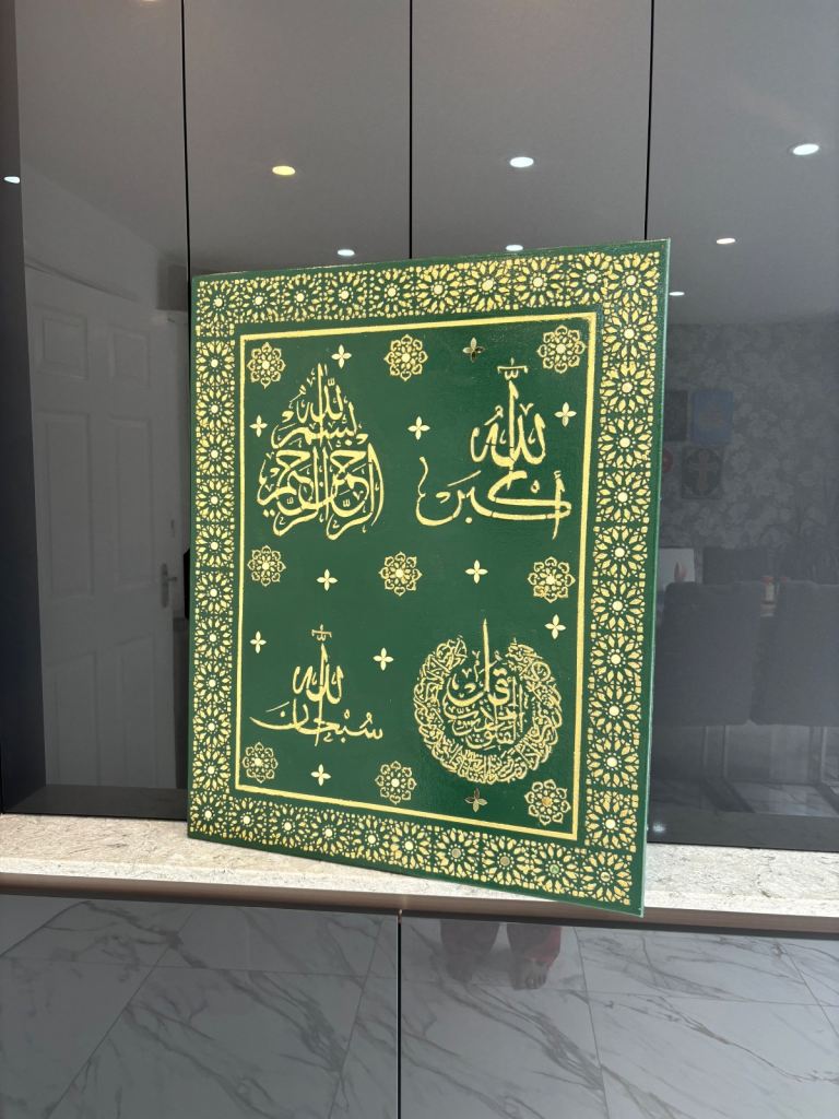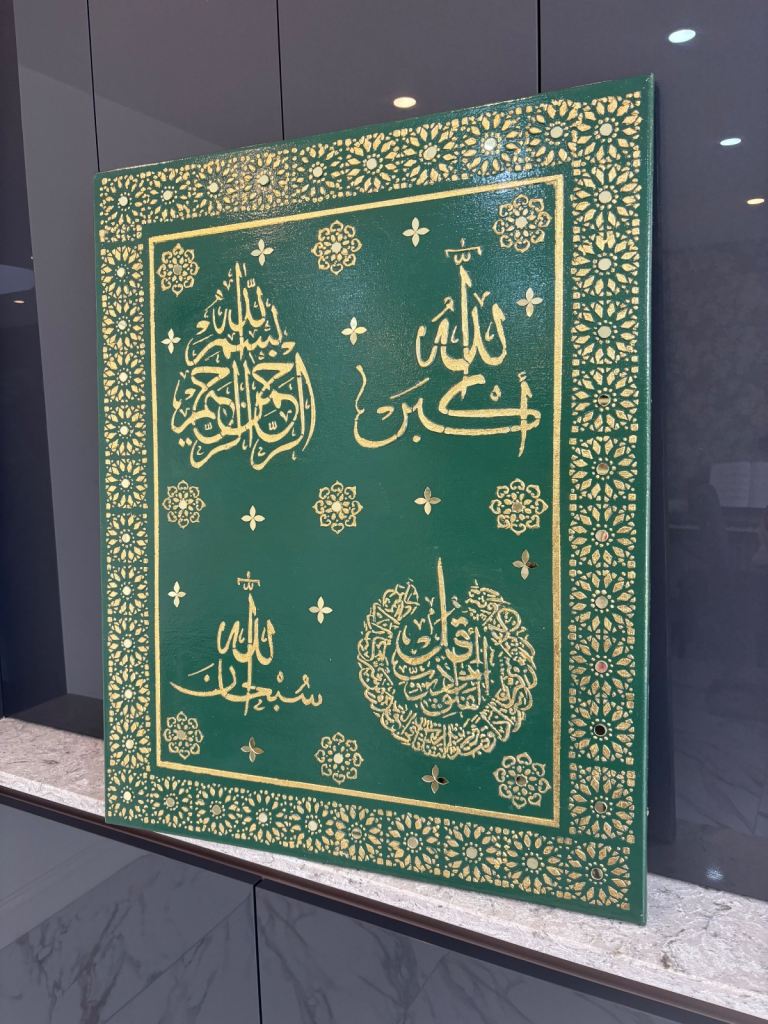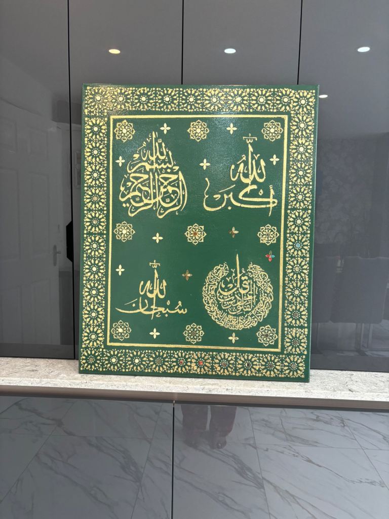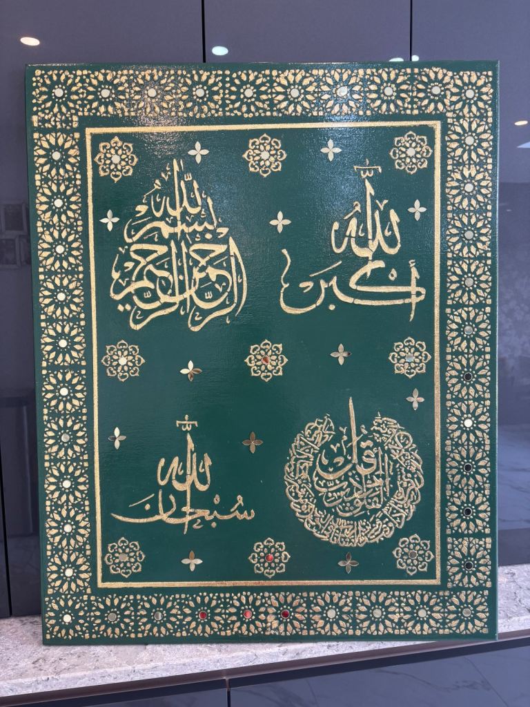 Posting for 1+ yearsIslamic Arabic Calligraphy Clay Stencil Painting with Gold Leaf