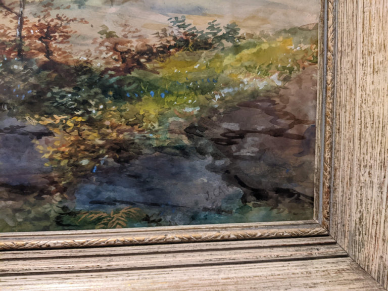 very attractive good sized watercolour signed j caw image approx 60 x 40cm and in good frame.