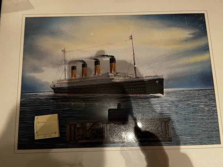 Large framed photo of the ship Titanic. Excellent condition. Measurements in photos.