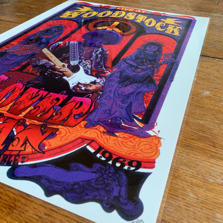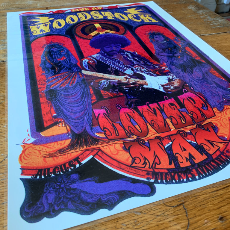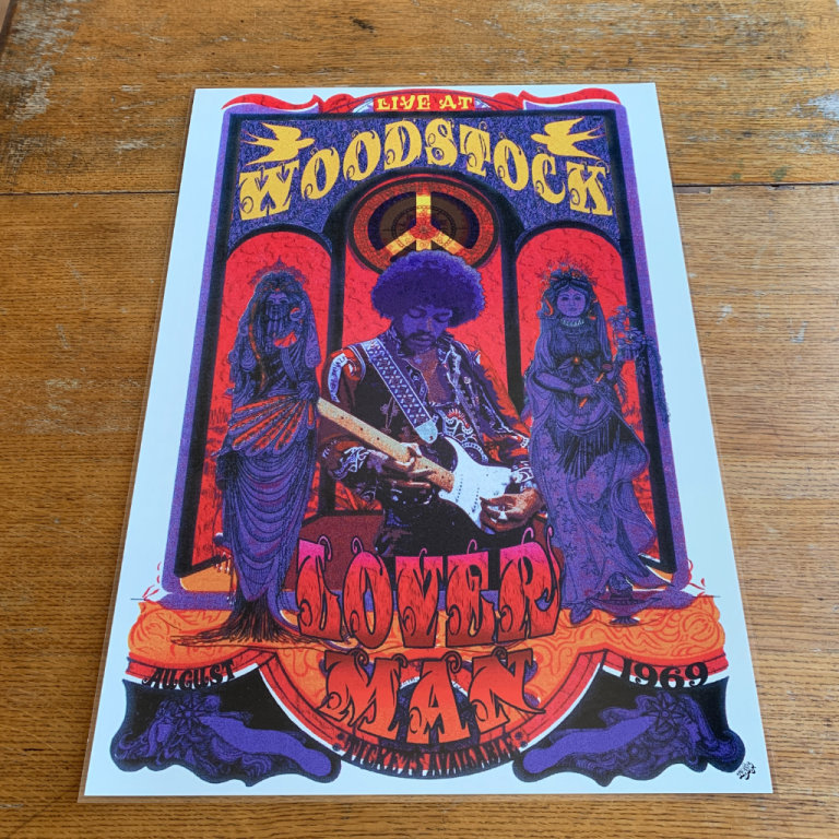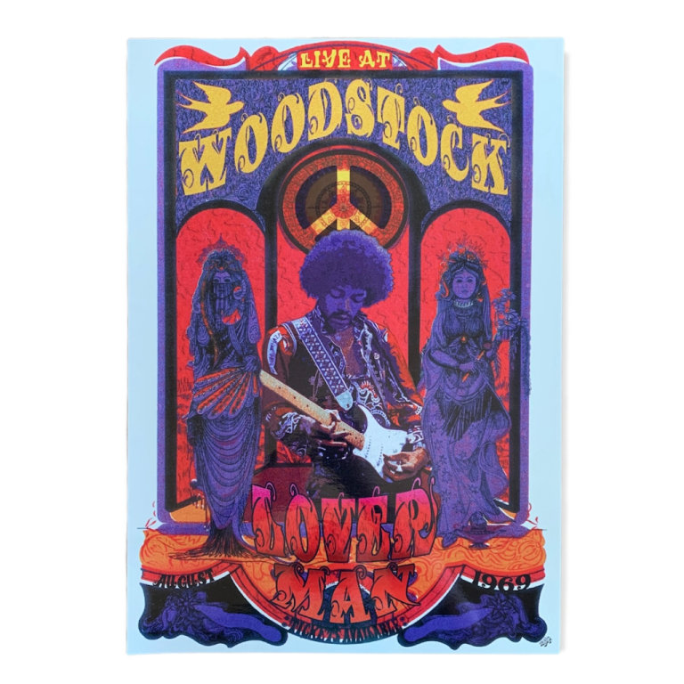This is an A2 Size Poster of Loverman Jimi Hendrix Live At Woodstock.
