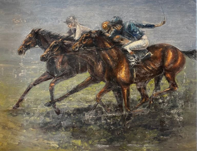 Maxine Cox Oil on Canvas Painting ‘Racehorses At the Gallop’