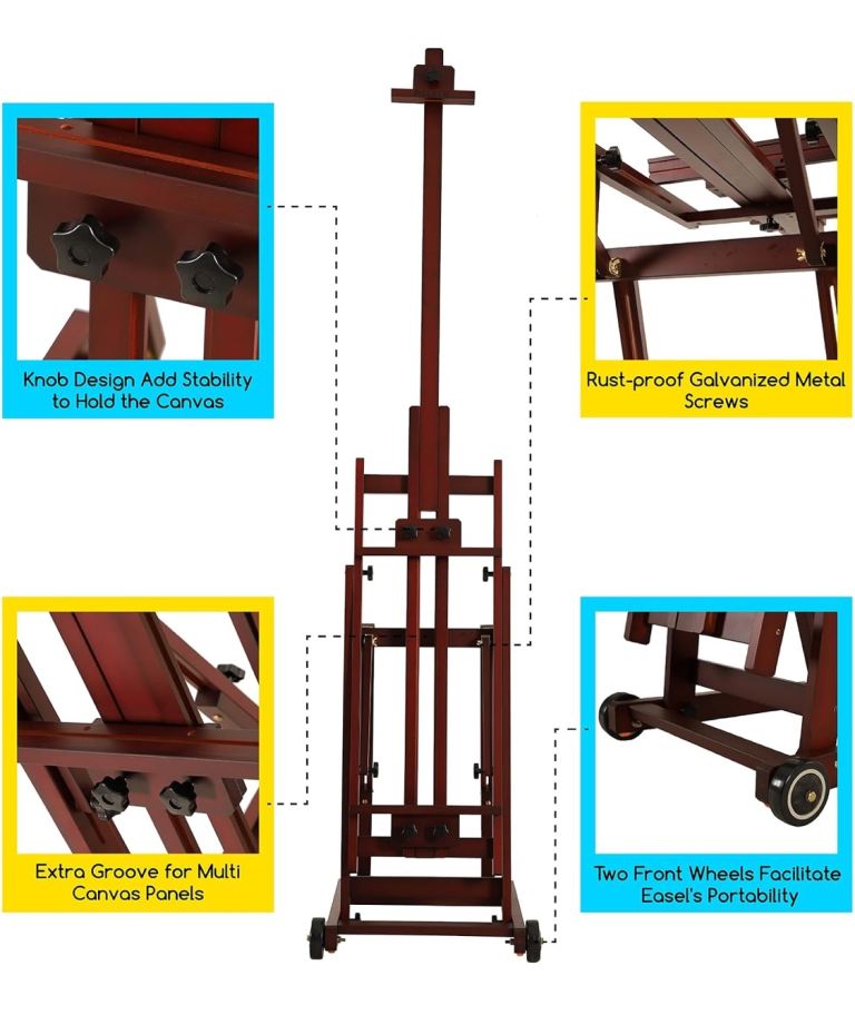 MEEDEN Artist Multi-Function Studio Easel, Beech Wood H-Frame Easel, Painting Easel